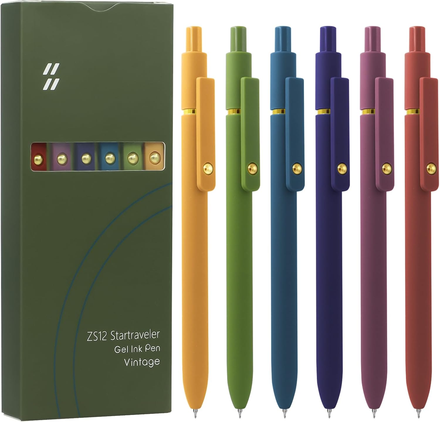 6 Pcs Gel Pens 0.5mm Quick Dry Black Ink Pens Fine Point Smooth Writing Pens, Cute Office and School Supplies Gifts for Women Teacher Students (6 Pcs Vintage Gold)