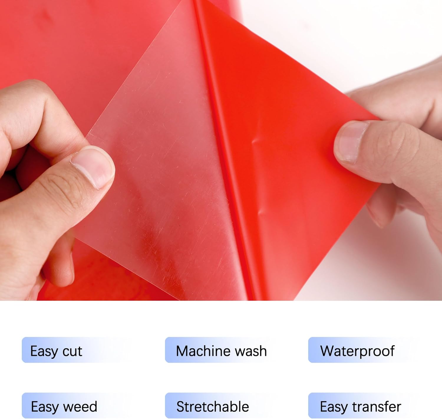 - 【Another Red】Our matte Red Heat Transfer Vinyl has a very silky matte finish instead of a glossy vinyl. This roll of heat transfer vinyl is made of PVC material with a matte soft textured surface. Our matte heat transfer vinyl rolls exhibit exceptional adhesion, peel or crack, even after washing. Please note: Allow 24 hours before first wash.