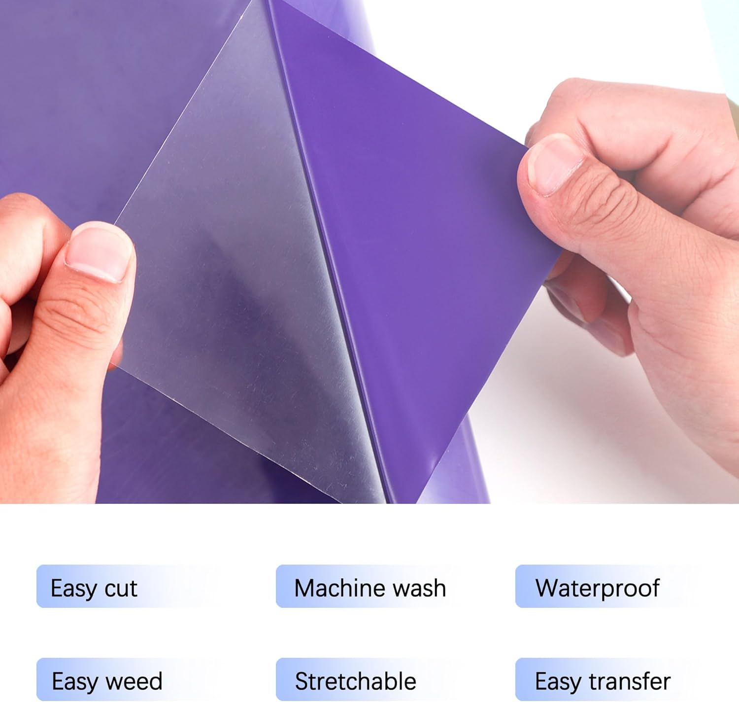 - 【Another Purple】Our matte Purple Heat Transfer Vinyl has a very silky matte finish instead of a glossy vinyl. This roll of heat transfer vinyl is made of PVC material with a matte soft textured surface. Our matte heat transfer vinyl rolls exhibit exceptional adhesion, peel or crack, even after washing. Please note: Allow 24 hours before first wash.