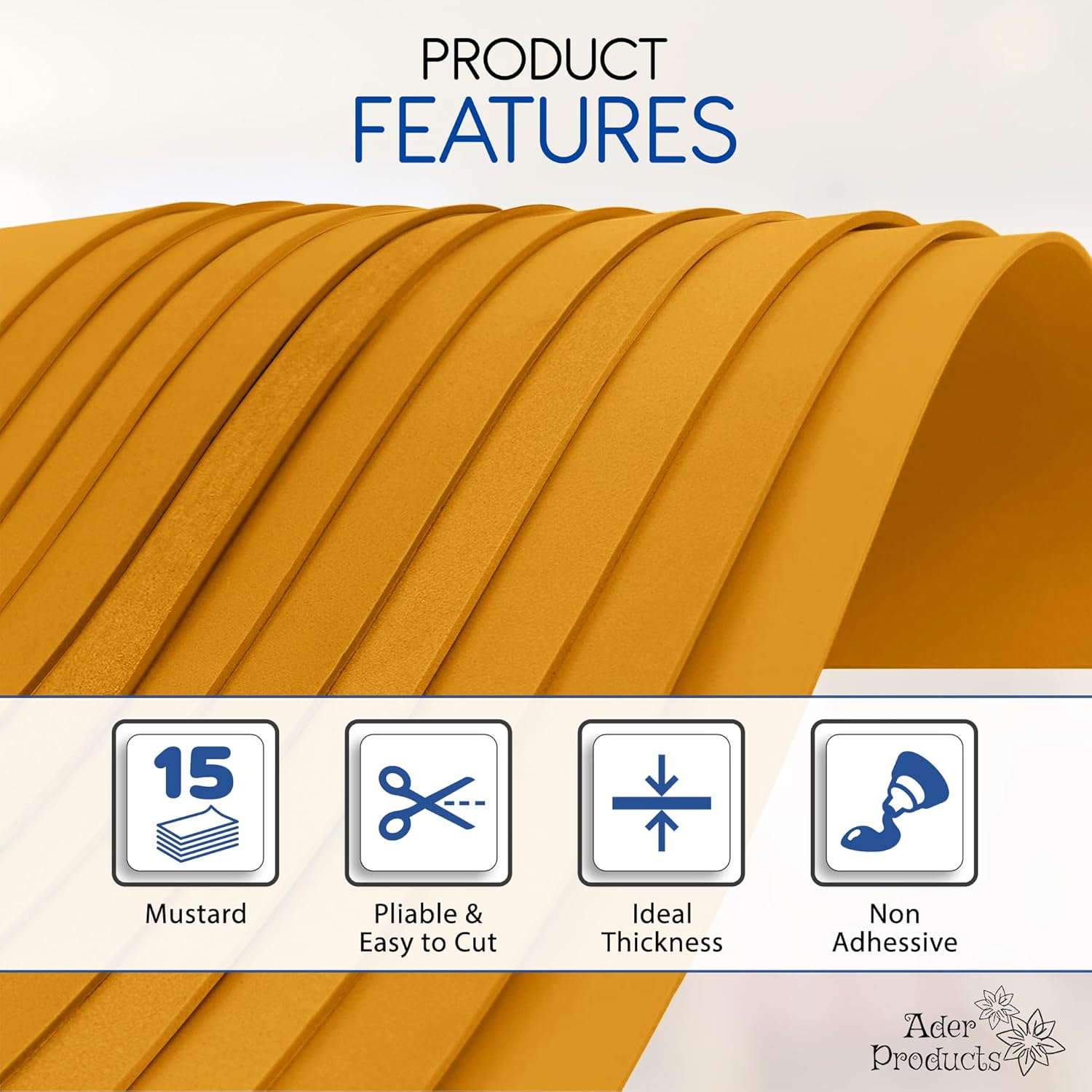 Mustard EVA Foam Sheets for Crafts, 9 x 12 Inch, 2mm Thickness – Ideal for DIY Arts and Crafts, Foam Paper for Kids, Cosplay and Costumes - 15 Pack