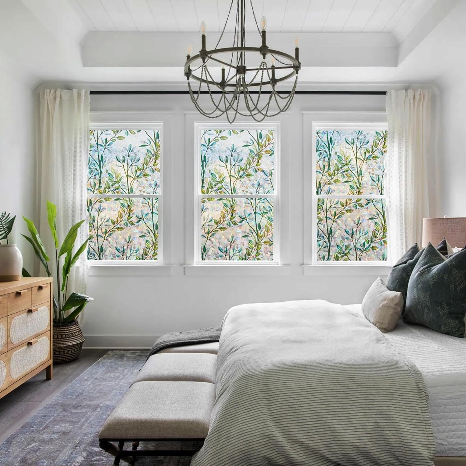 - 【Vivid Leaf & Rainbow Effect】Elegant green leaf designs create stunning rainbow holograms in sunlight, transforming plain glass into nature-inspired art that enhances any décor.