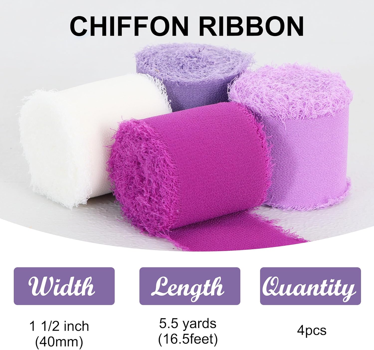- ăPackage DetailsăYou will receive 4 rolls of 22 yards of chiffon ribbon, 1.5" wide x 5.5 Yd per roll, Soft color palette to meet your art and crafts needs.