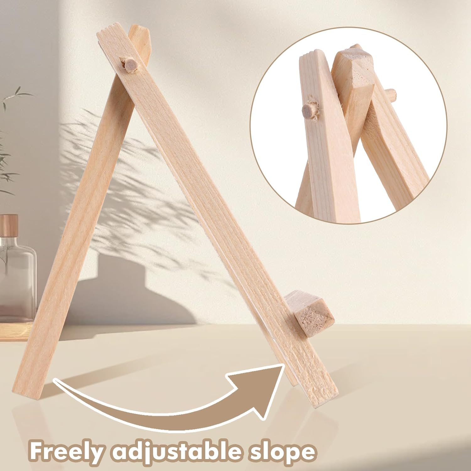 - Practical 3-leg Design: the mini wooden easels for display adopt the 3 leg design, which allows them to stand on flat surfaces without slipping (this needs to be adjusted to the right angle), and it's easy to adjust the height and angle of the display; If the adjustment angle is too large, you can use something to hold it next to the easel, otherwise it will slide