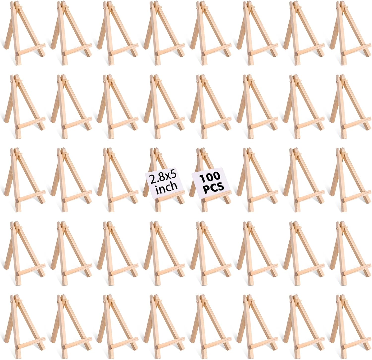 100 Pieces Mini Wood Easel Stands 5 Inch Small Wooden Canvas Easels Display Art Craft Tripod Painting Easels Tabletop Holder for Artist Crafts, Business Cards, Photos, Gift