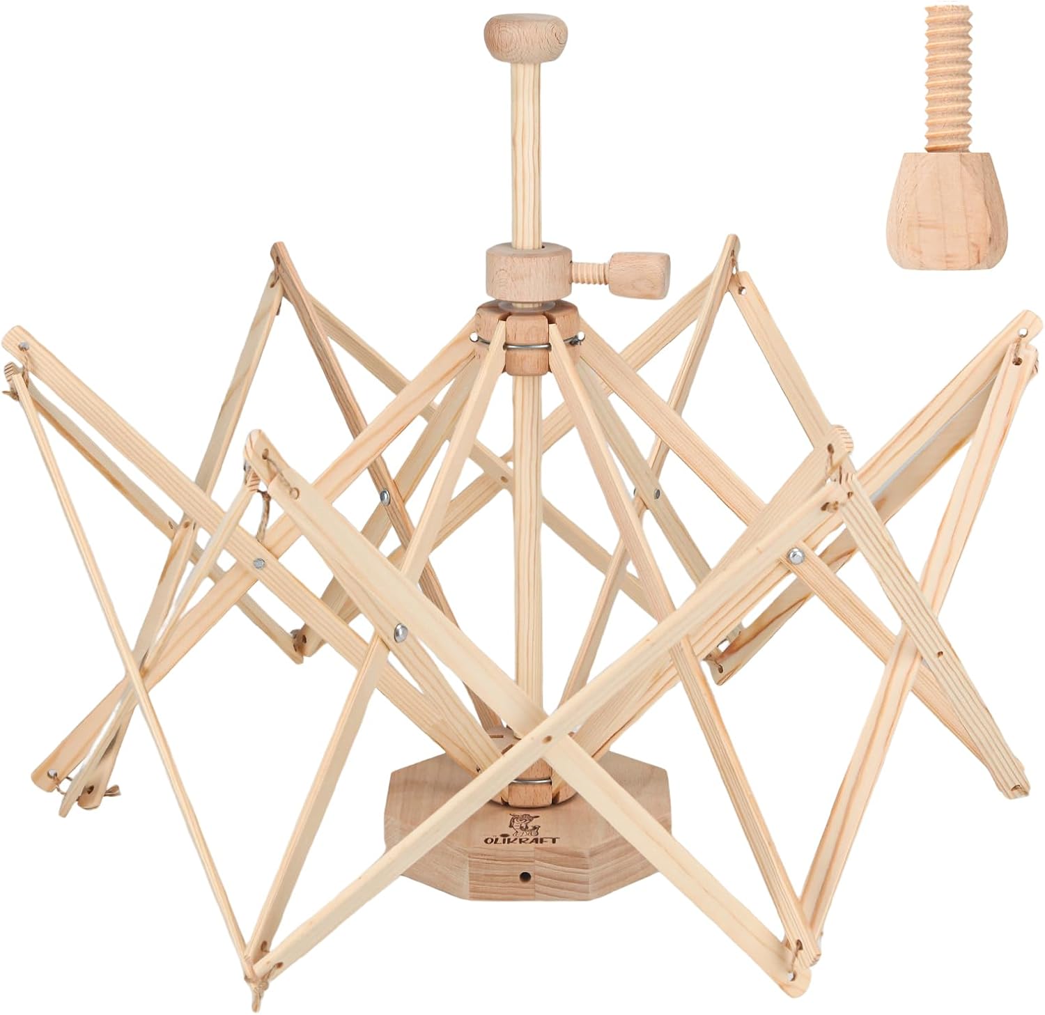 Olikraft Wooden Yarn Swift | Lightweight Reverse Yarn Umbrella Swifts | Ball Swift | Skein Winder | No Clamp Required (Patented)