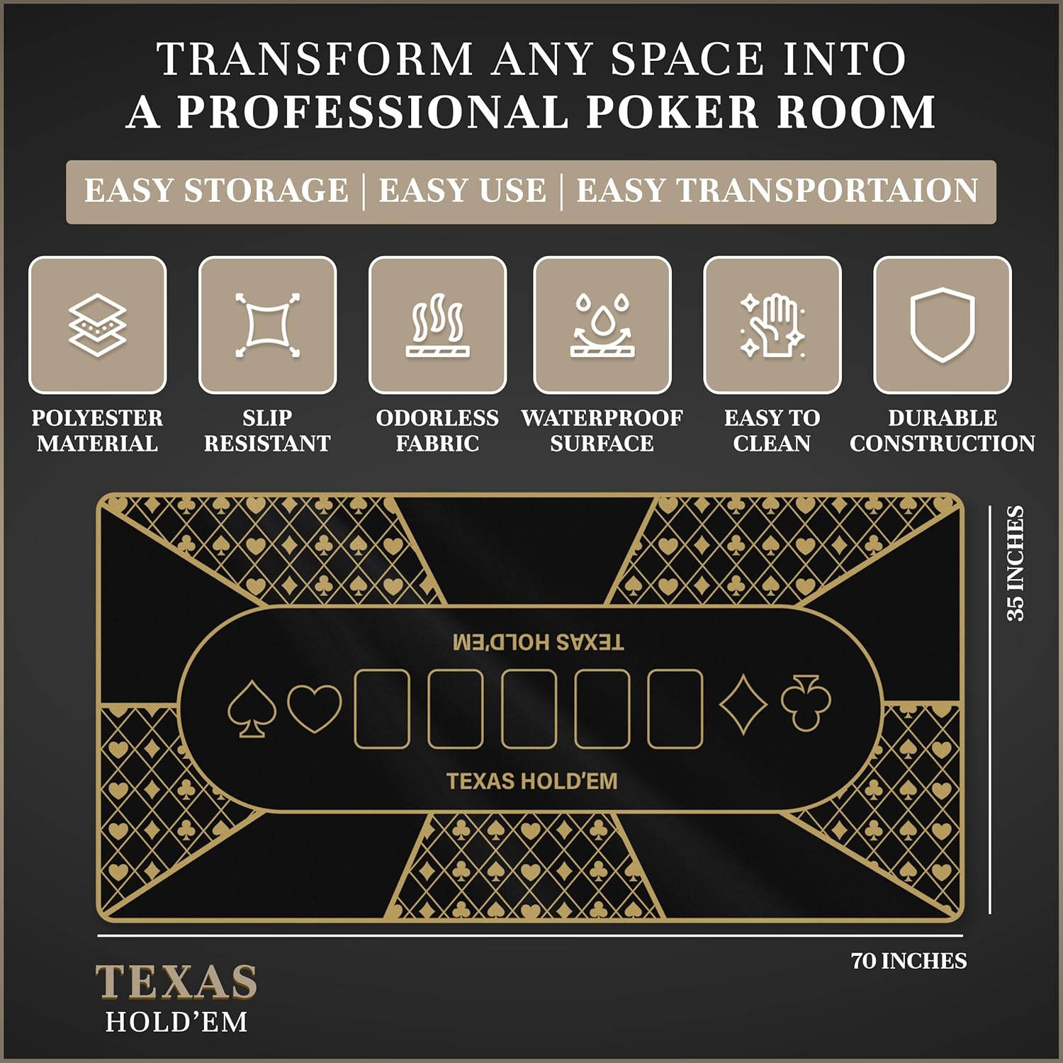 - STICKS SECURELY TO ANY SURFACE - Tired of poker mats that slide around during the game? This poker table topper features a non-slip backing that keeps it securely in place, so you can focus on your winning hand.