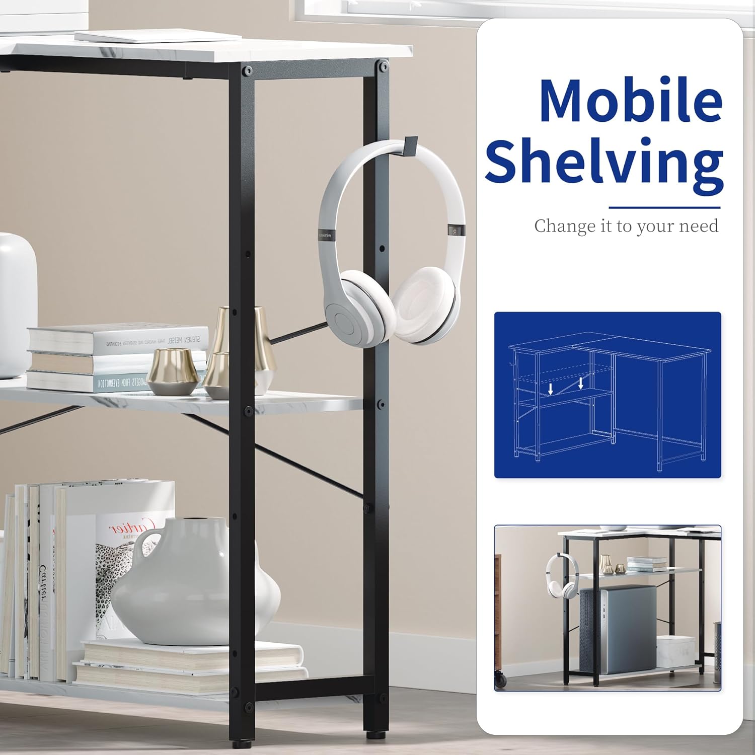 - Ample Storage Space -- This computer desk features two open shelves that can be adjusted in height to accommodate items of different sizes, allowing you to customize the shelves to fit your storage needs. Plus, it comes with a convenient hook for hanging bags and headphones.