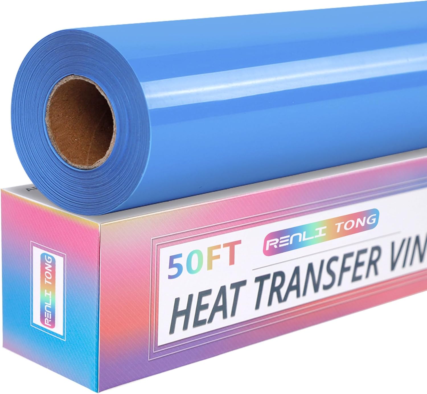RENLITONG Sky Blue Iron on Vinyl 12Inch by 50ft Roll HTV Heat Transfer Vinyl for T-Shirt HTV Rolls for All Cutter Machine - Easy to Cut & Weed for Heat Transfer Design