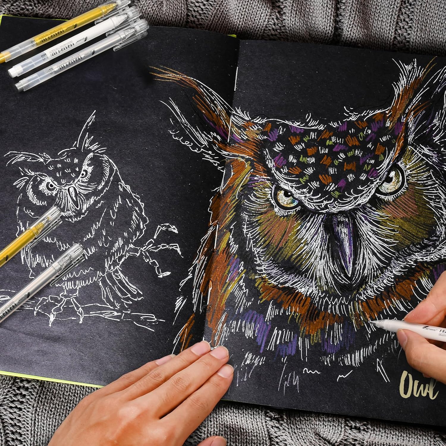 Gold Silver White Gel Pens, 1mm Fine Point Gel Ink Pen Opaque Archival Ink Pens for Black Paper Drawing, Sketching, Illustration, Card Making, Bullet Journaling, 6 Pack