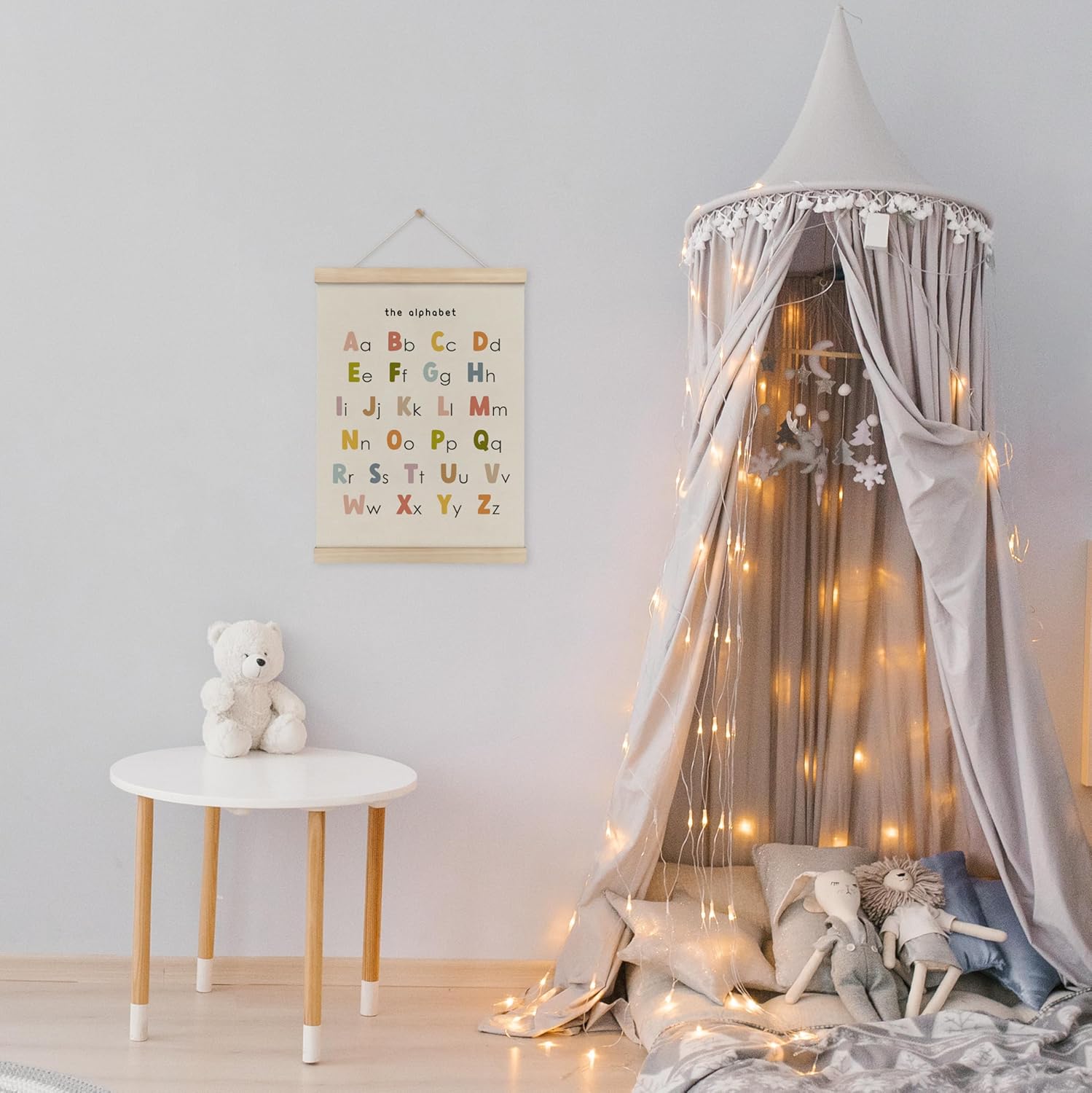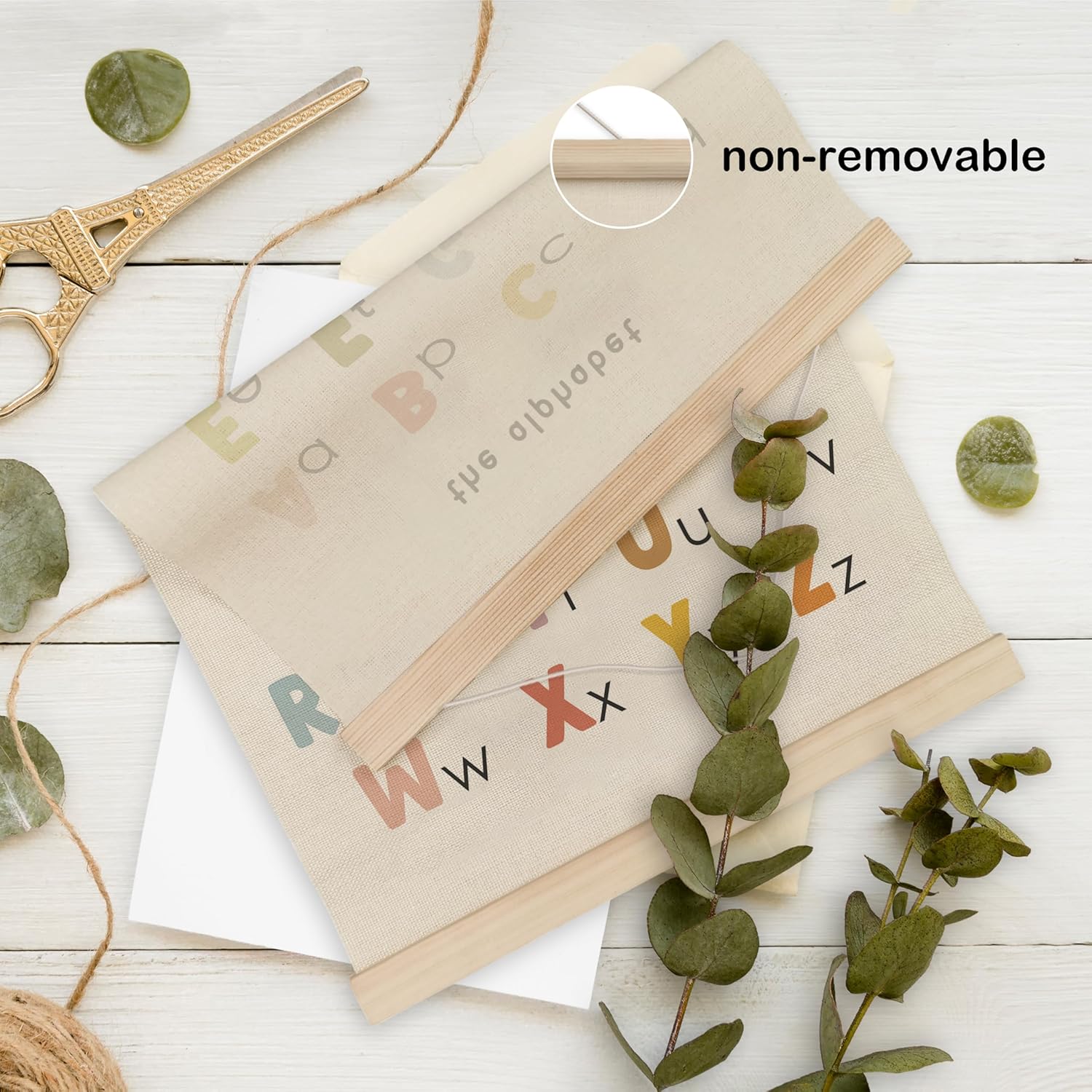 HRQKO ABC Poster Hanger Frame, Alphabet Wall Art, Cute ABC Poster Wall Art with Wooden Frames, Alphabet Banner Wall Hanging Decor for Nursery Toddler Playroom, 12x16 inch