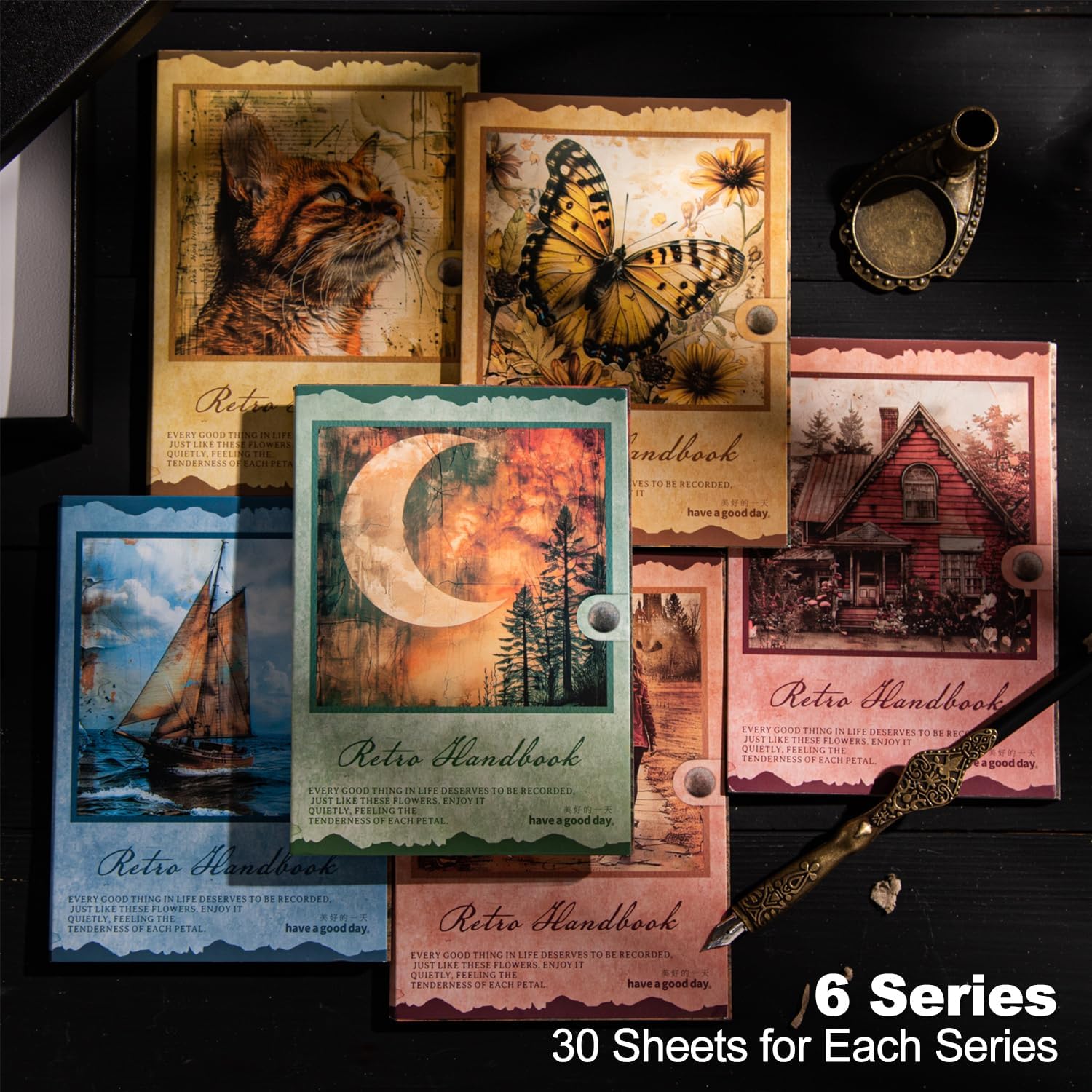 - Versatile Vintage Designs: This Retro Handbook series features 6 unique vintage designs(totally 180Pcs), each with intricate details to inspire your creativity. Perfect for adding a nostalgic touch to your journals, scrapbooks, and various craft projects.