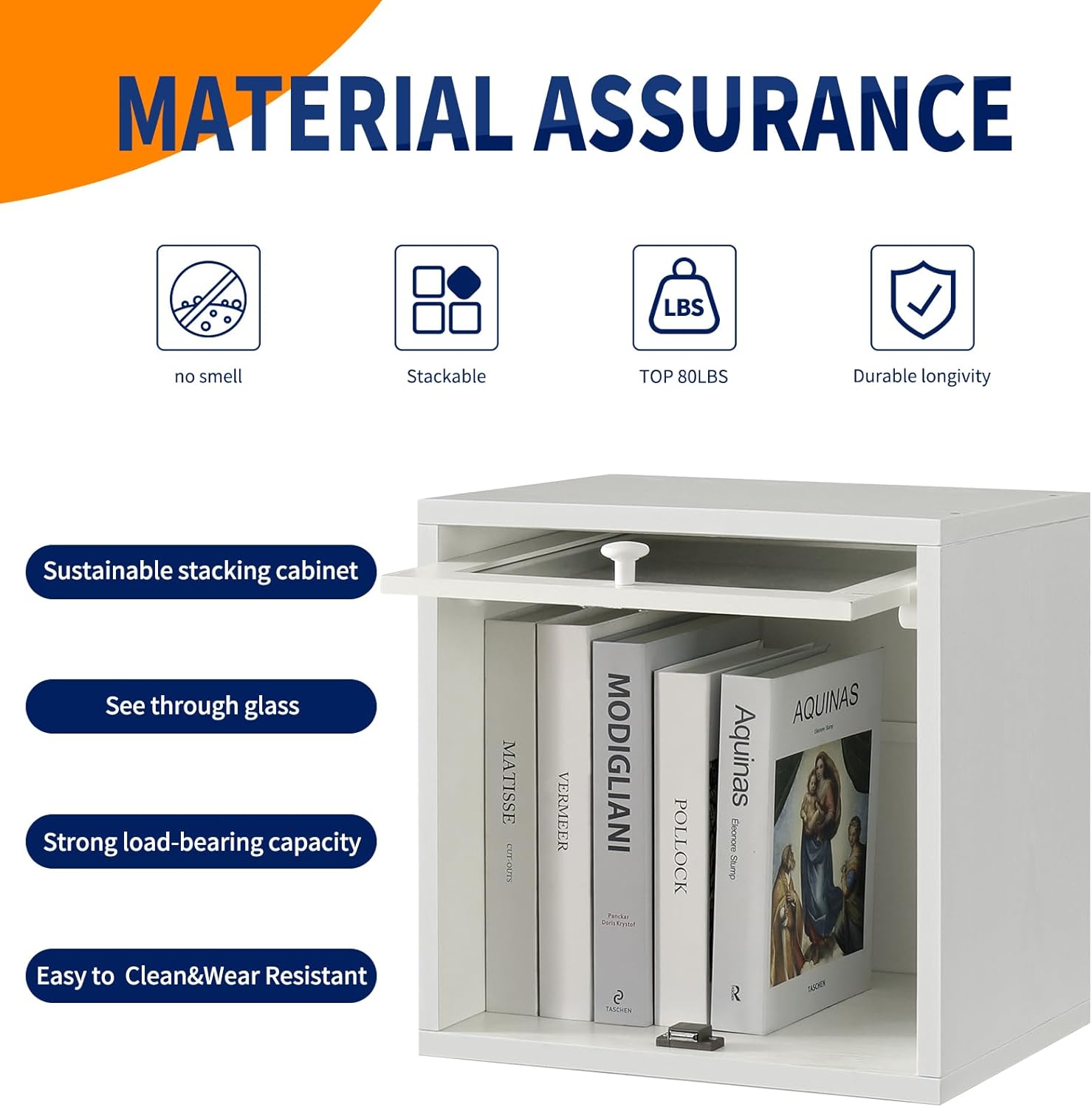 FUSUNBAO Magic DIY Cube Storage Organizer Stackable Cubes for Home Books Clothes Toy-Modular Cubby Storage System-Office Cubical-Bookcase Closet(Pure White-Washed, Glass Door Cube)