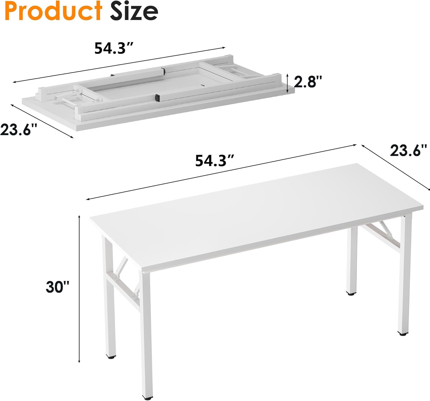 Need Folding Desk, 54 inch Large Computer Desk for Home Office, No Install Needed Study Student Writing Table Desk Workstation, White