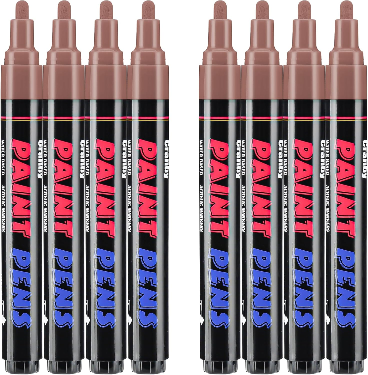 Brown Paint Pens Paint Markers - 8 Pack Permanent Quick Dry Waterproof Marker Pens for Rocks Wood Fabric Plastic Canvas Glass Mugs Metal Tire Stone