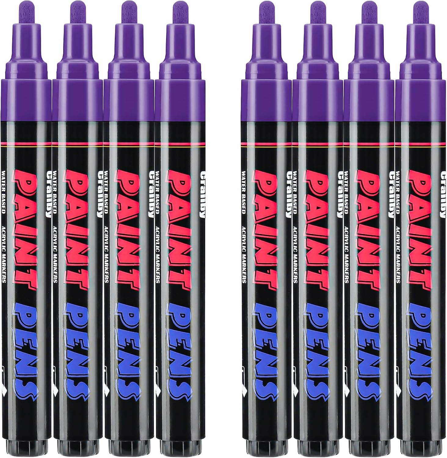Purple Paint Pens Paint Markers - 8 Pack Permanent Quick Dry Waterproof Marker Pens for Rocks Wood Fabric Plastic Canvas Glass Mugs Metal Tire Stone