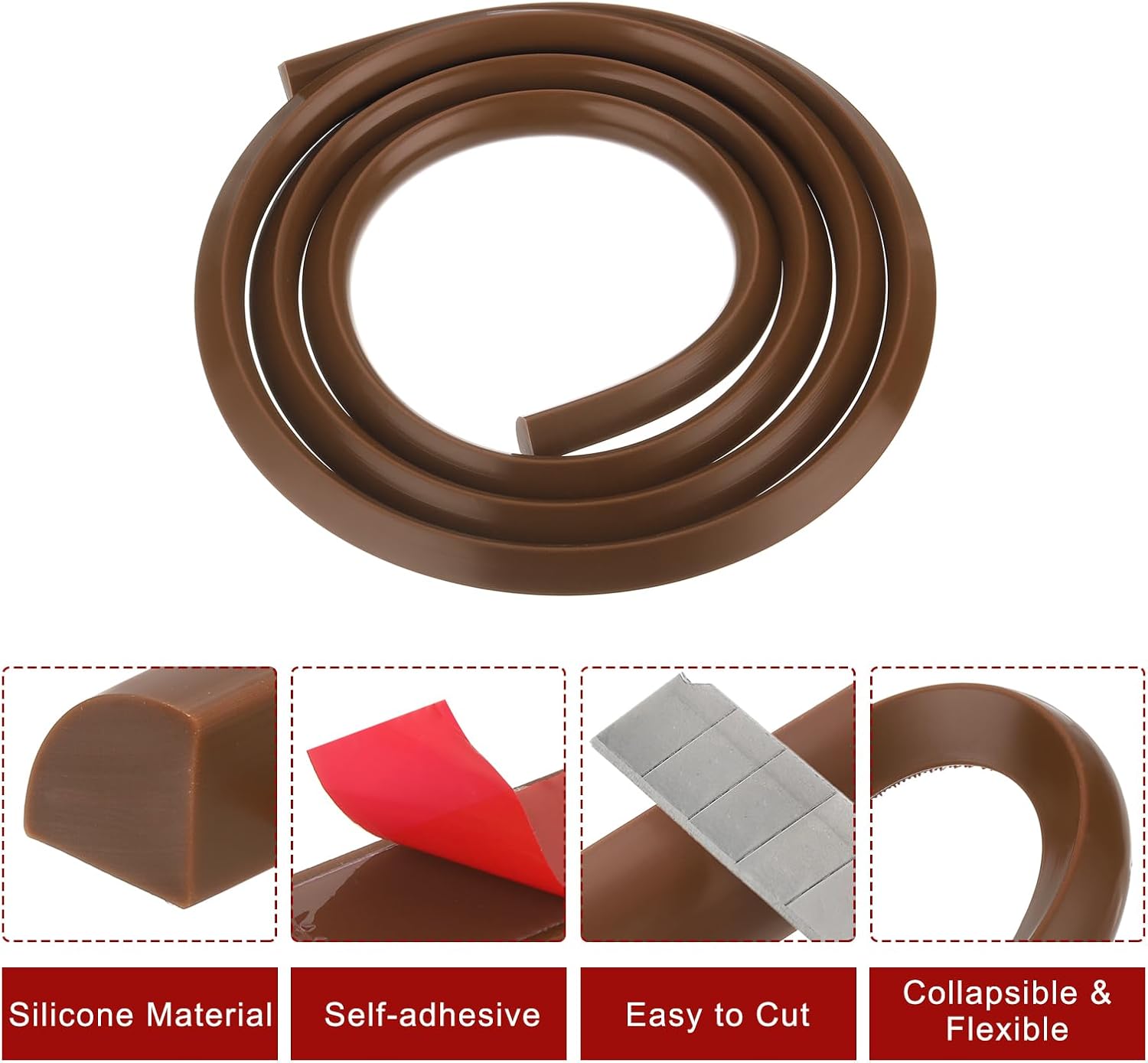 uxcell Flexible Molding Trim, 98 Inch Flexible Quarter Round Molding Silicone Peel and Stick Trim Self Adhesive Shower Water Barrier for Corner Decor Bathroom Kitchen, Brown
