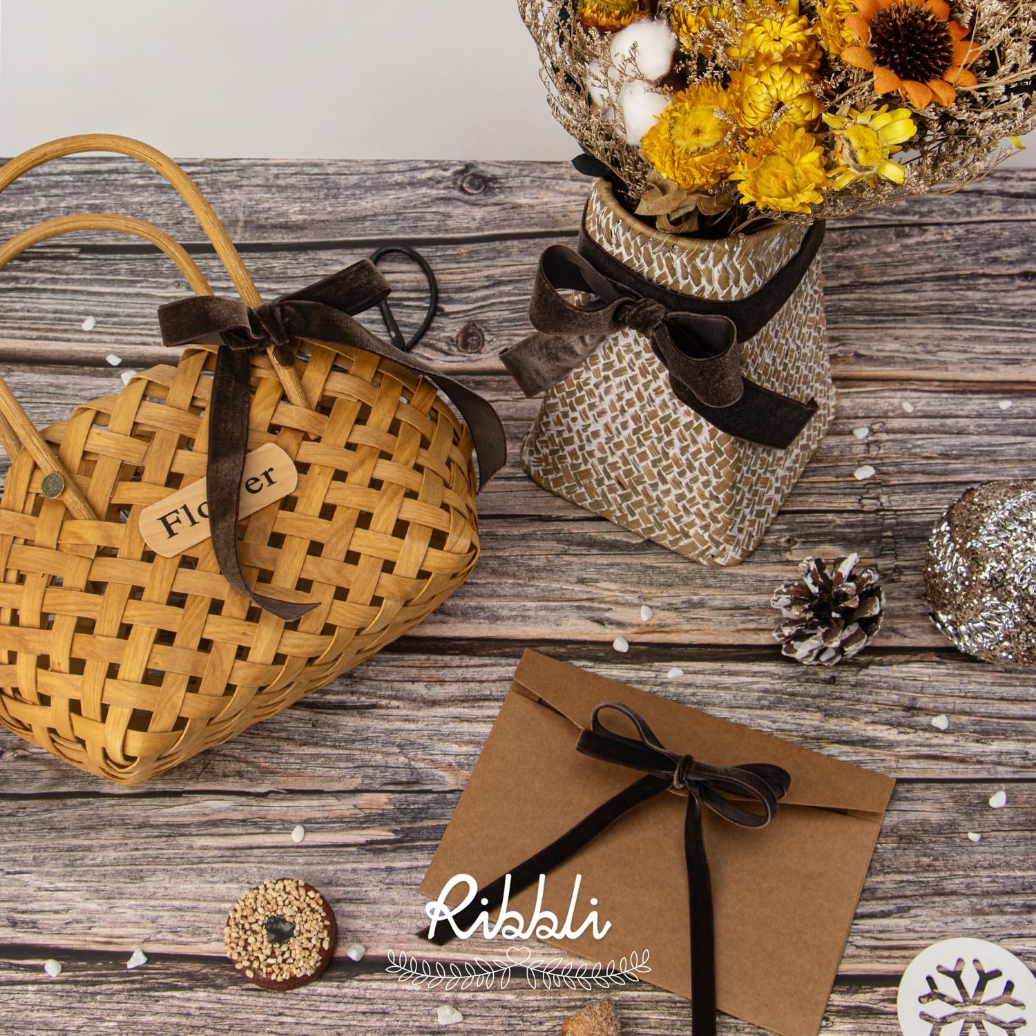 Ribbli Brown Velvet Ribbon 1 Inches Continuous10 Yard Spool Christmas Ribbon for Gift Wrapping Crafts Home Decor