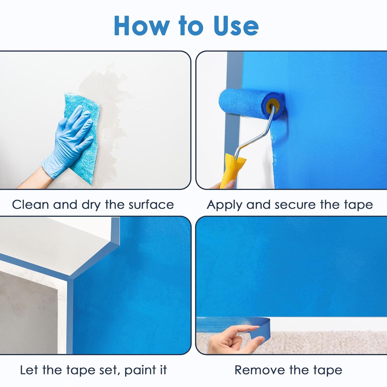 - NO Residue: Whether you are a painter or an everyday user, you can create clear lines with our blue masking tape. When removed, the tape does not leave residue or damage the surface, keeping it clean and avoiding cleaning hassles