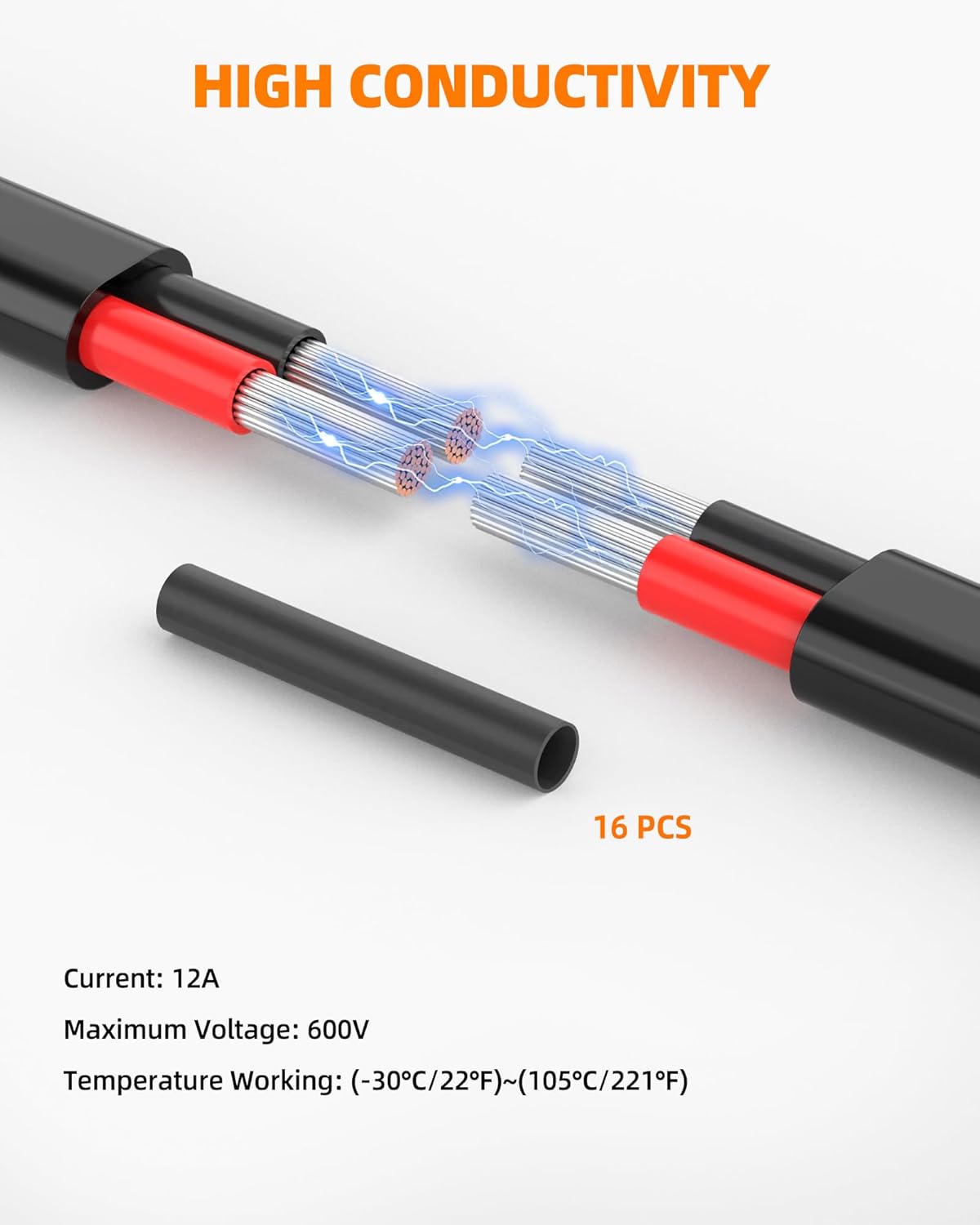 - RELIABLE PERFORMANCE: 16 AWG wire Waterproof level: IP68; Flame retardant rating: VW-1; Rated voltage: 600V, with compatibility for 5V, 12V, and 24V up to 600V applications; Operating temperature: -30°F to 221°F