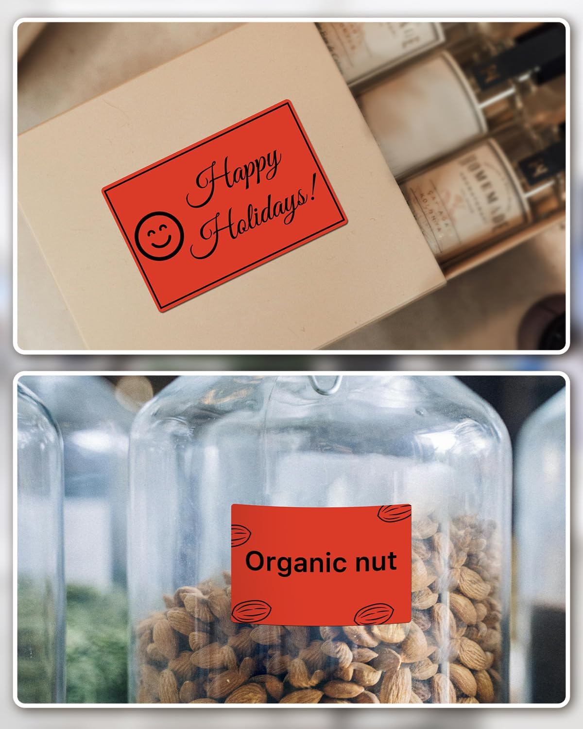 - Specifications: iEager 3" x 2" red thermal label with perforation line, 500 labels/roll. Paper tube inner diameter 1". No ink, toner or ribbons needed