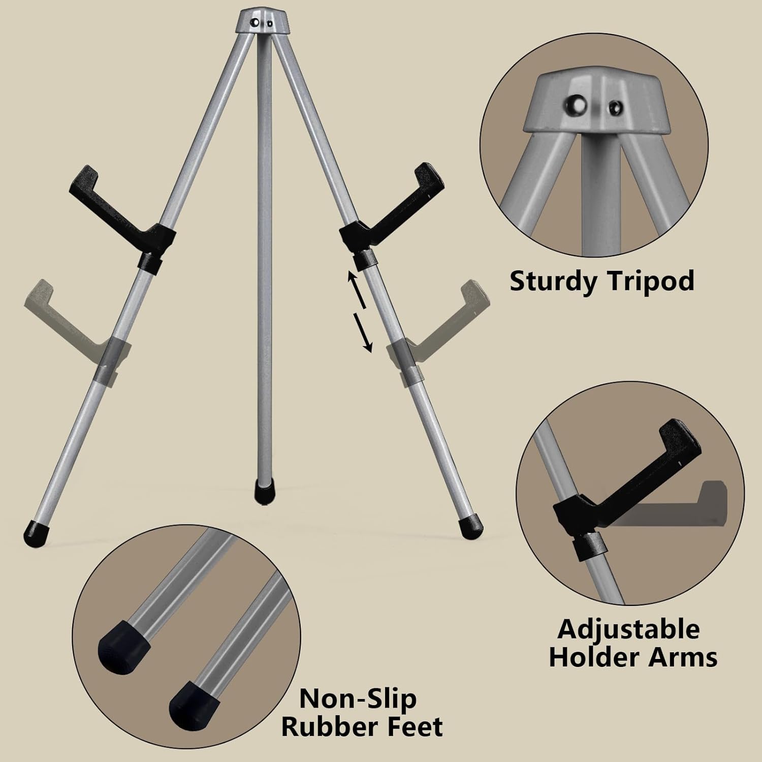 - Stable Tripod: Somime sturdy tripod easel is made of lightweight tubular steel material and has a black gloss surface. Three non-slip rubber feet ensure sufficient stability and desktop surface protection