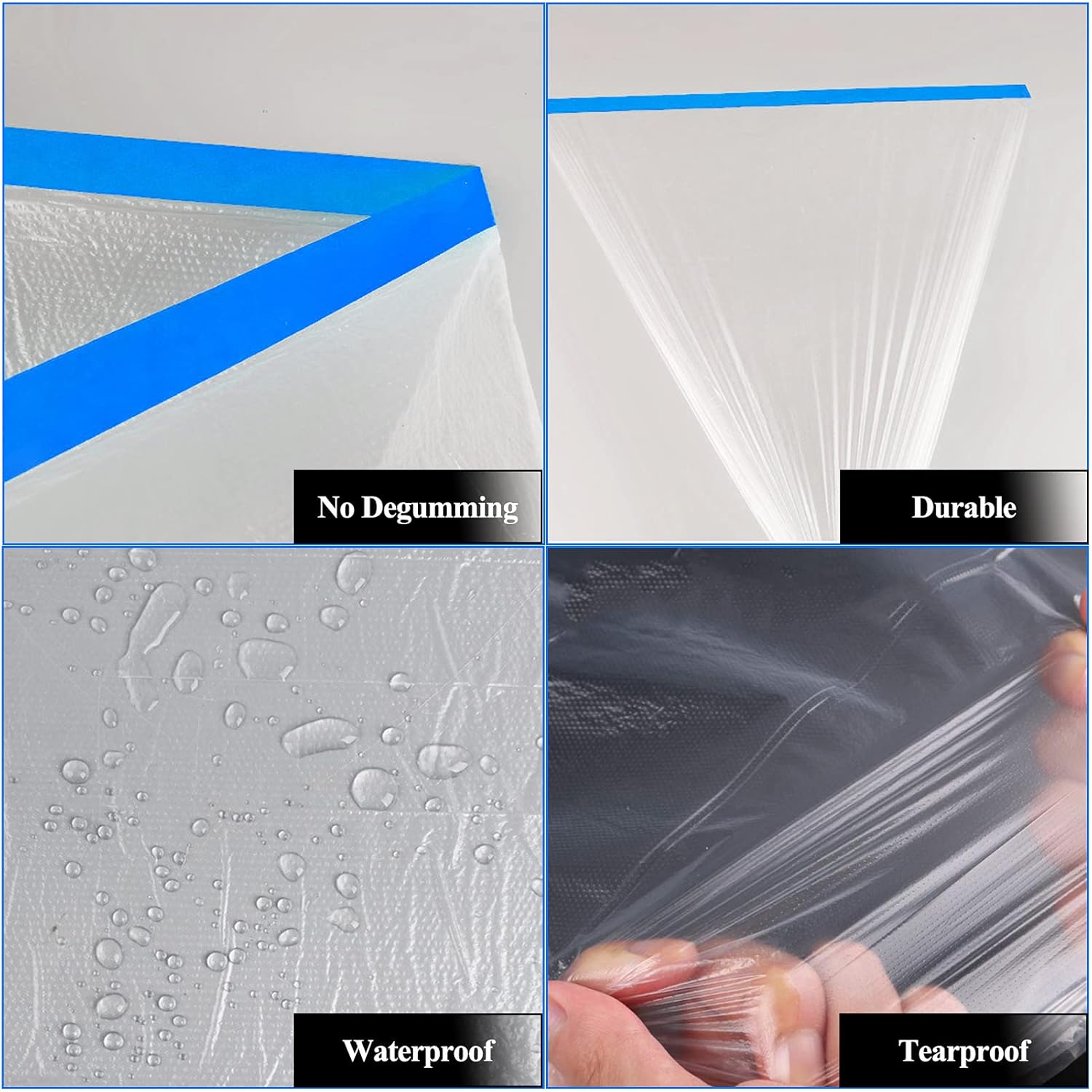 - Protective masking film, suitable for automobile paint, furniture and electrical protection. The pre-attached masking film can prevent household appliances and furniture from dust and paint during home decoration or painting. Can be used as car dust cover, car paint spray paint protective film