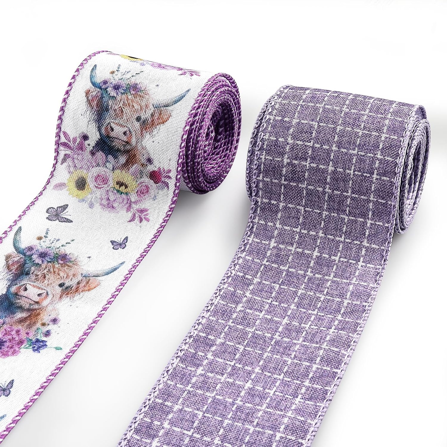 2.5'' x 10 Yards Spring Wired Ribbons for Crafts Wreath Bows Wrapping Natural Buffalo Plaid Ribbon Rustic Purple Ribbon for Birthday Party Home Decoration