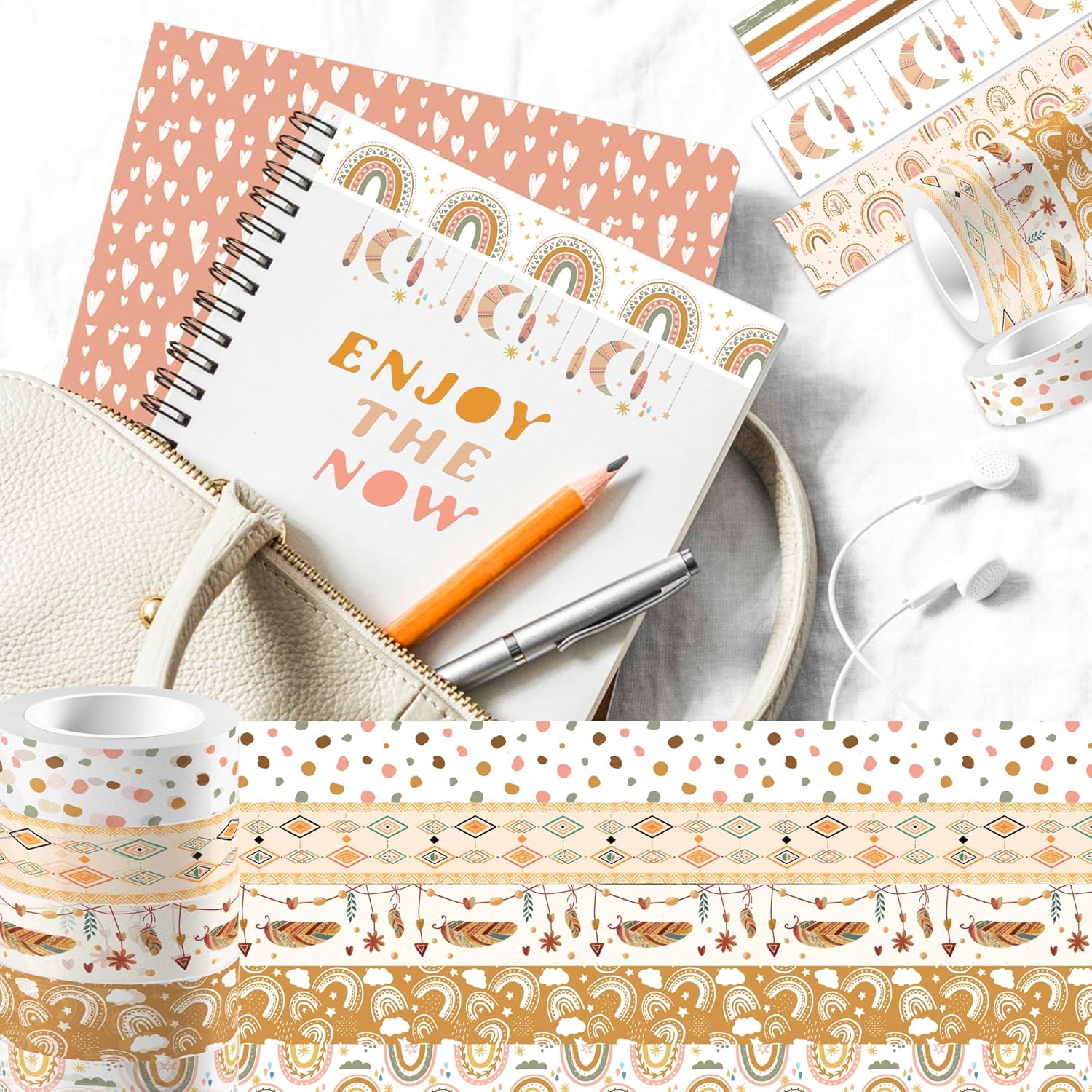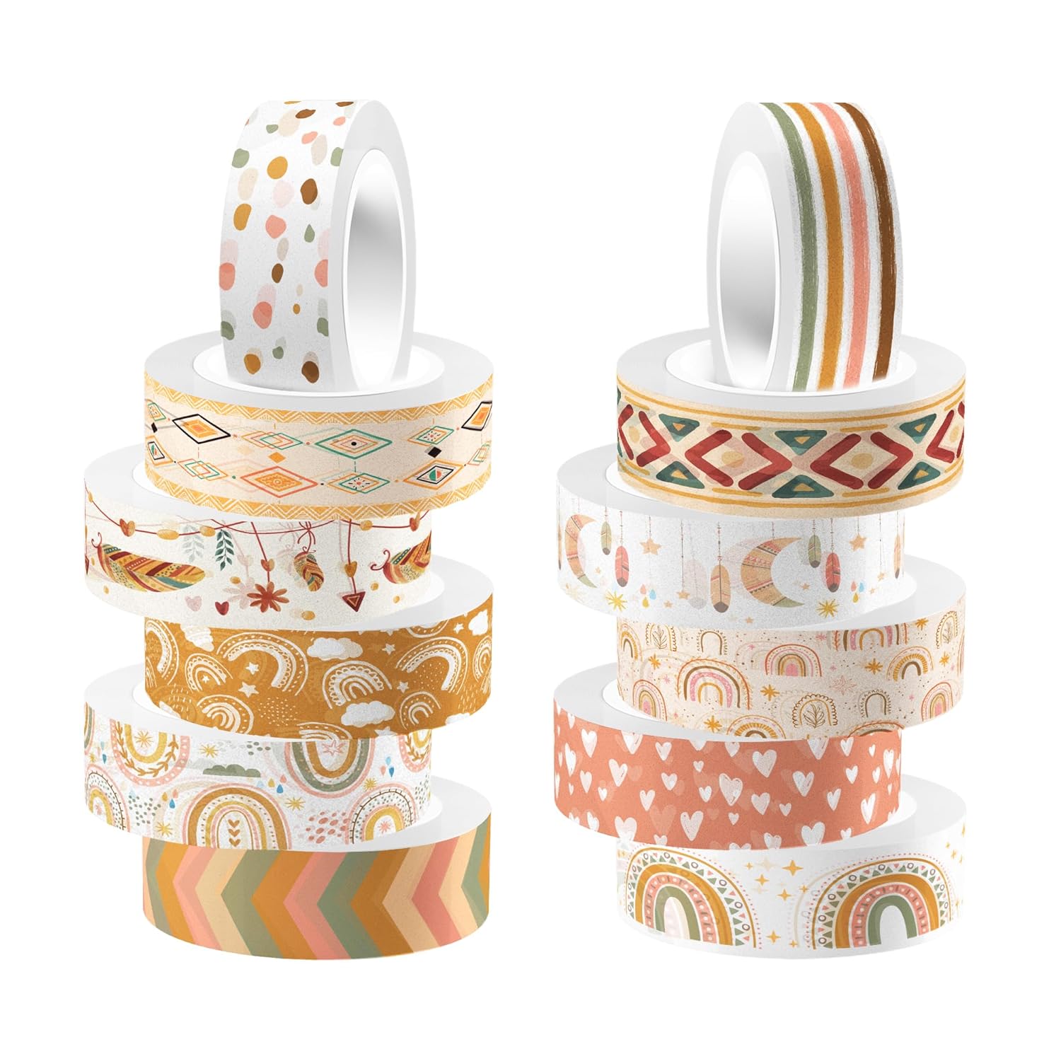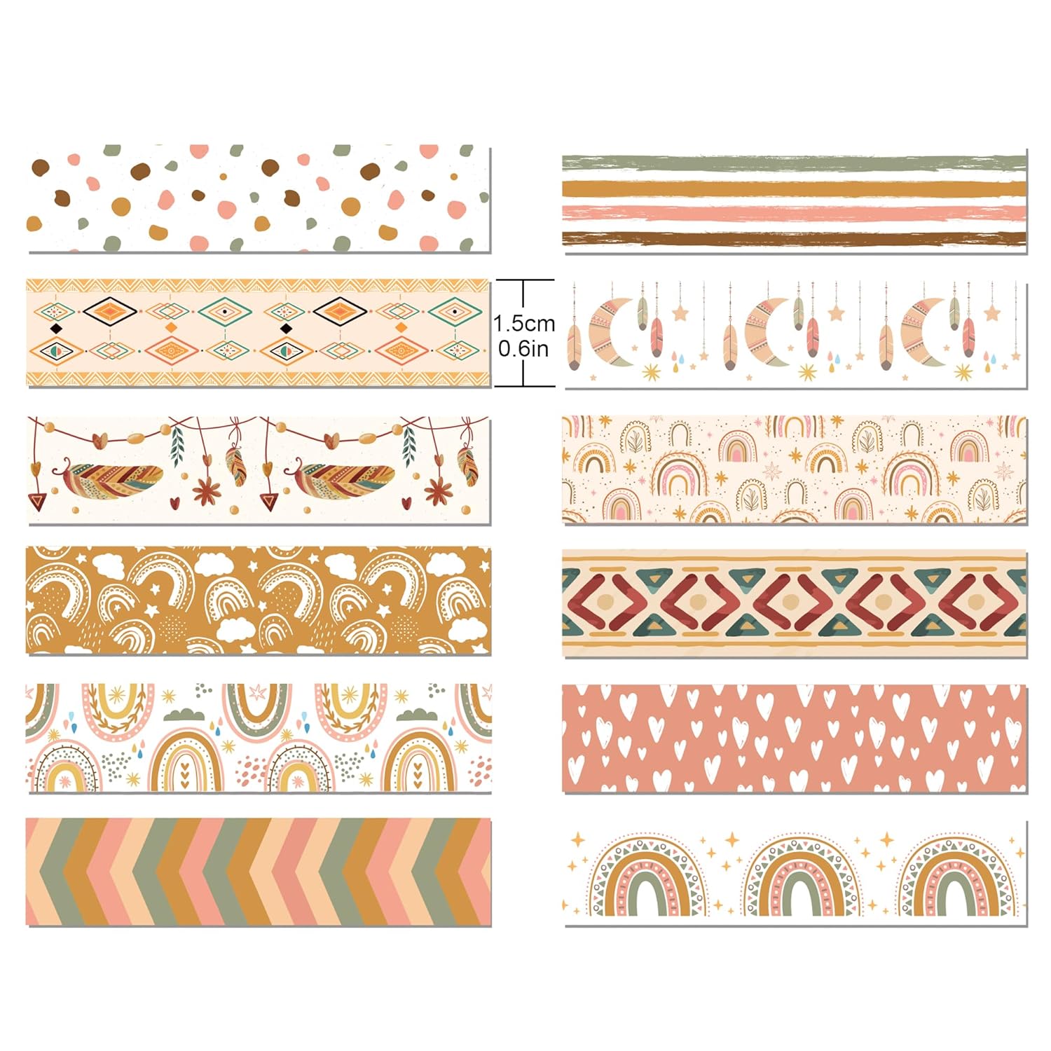 - What you Get: 12 rolls of boho washi tape rainbow tape cute washi tape neutral washi tape with different styles.If you receive the goods have any do not like, or product the problem, we will provide you with a return service, you can contact us by e-mail
