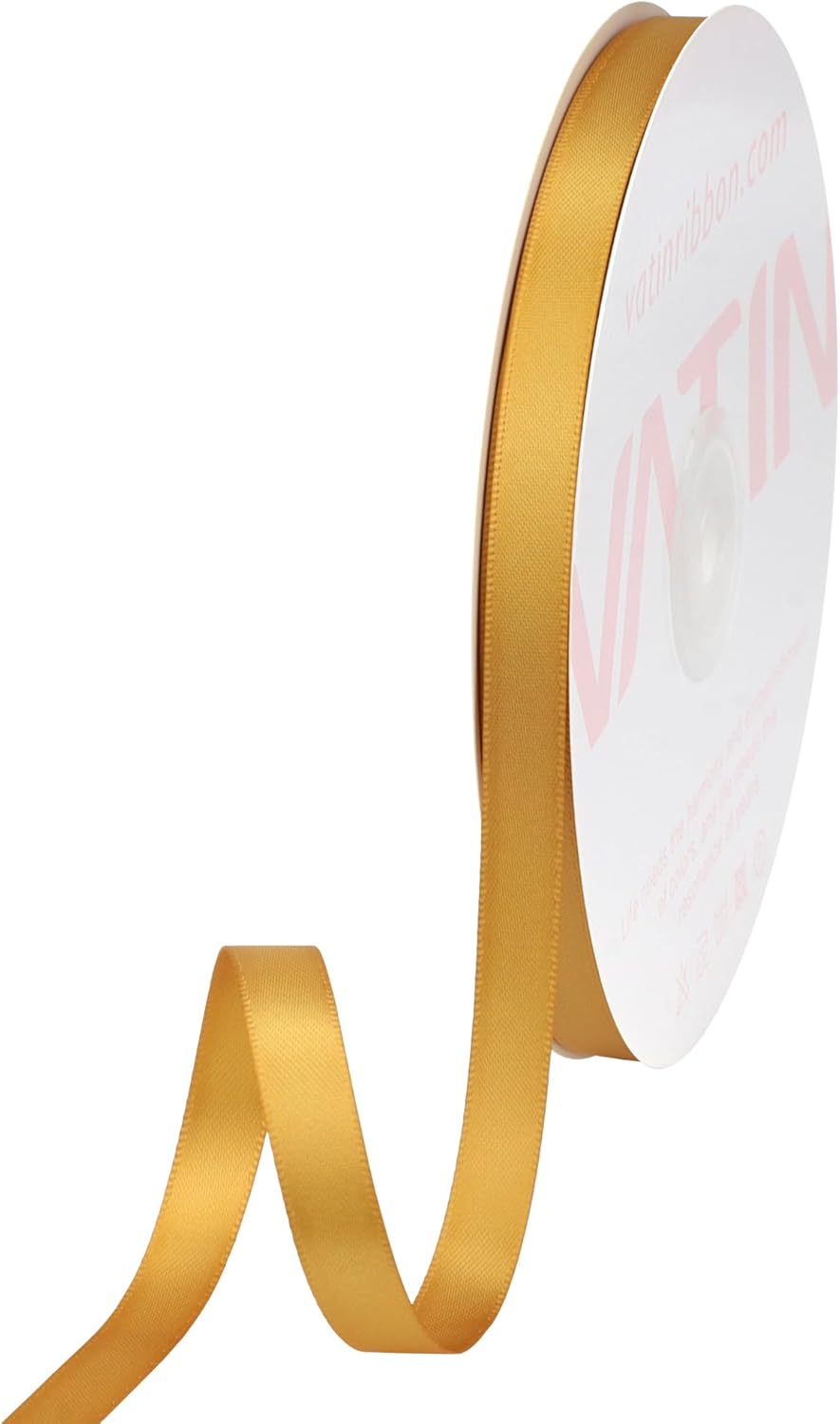 VATIN Double Face Old Gold Satin Ribbon 3/8" Continuous 50 Yards,Gold Polyester Fabric Ribbon use for Bows Bouquet, Gift Wrapping, Floral Arrangement Wedding Decoration