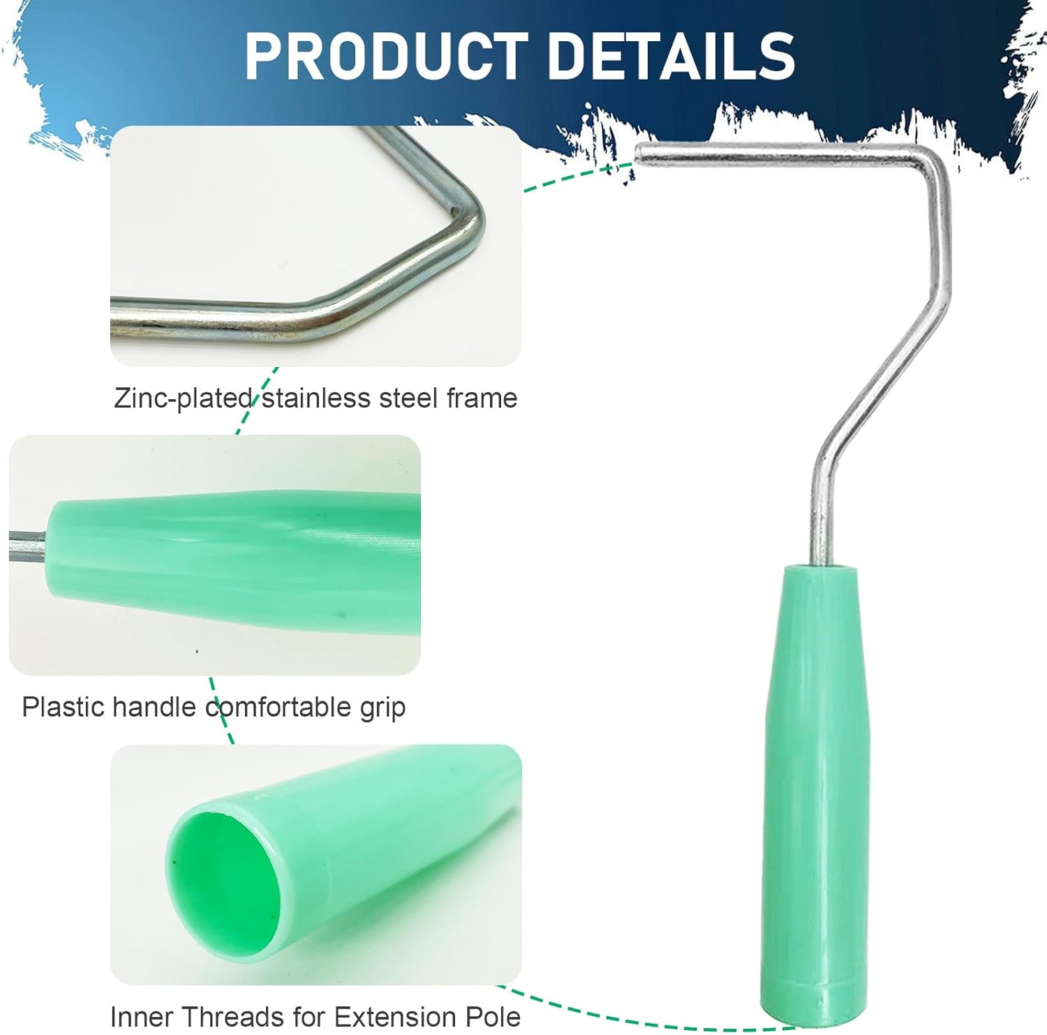 - 【4 Inch Paint Roller Frame】The paint roller frame is compact in size, about 8 inches long, suitable for under 4-inch paint rollers, suitable for smaller, more detailed paint jobs, easier access to corners, incisions and other narrow areas, and stable use