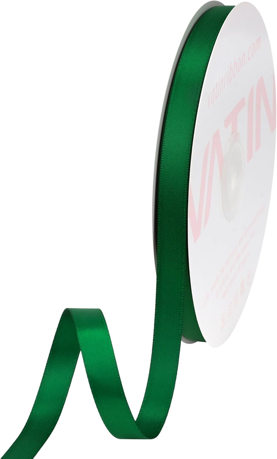 VATIN Double Face Green Satin Ribbon 3/8" Continuous 50 Yards,Green Polyester Fabric Ribbon use for Bows Bouquet, Gift Wrapping, Floral Arrangement Wedding Decoration