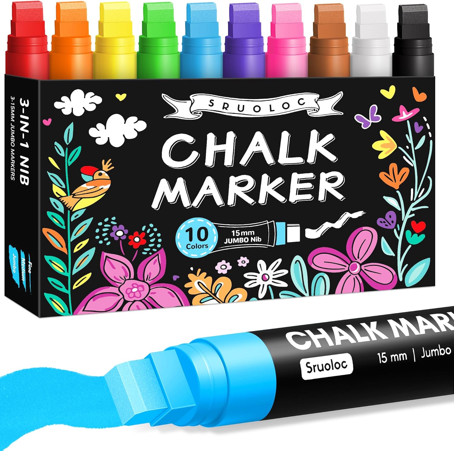 - Jumbo Chalk Markers Set: SRUOLOC chalk markers for blackboard are made with the highest quality water-based liquid chalk ink. It is perfect for decorating car, window, any bistro boards, wedding signs, classroom blackboards, Christmas banners, etc.
