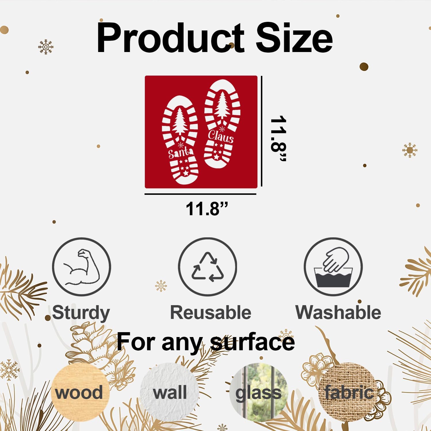 - Package Includes:4pcs large Christmas stencils for floor,the Christmas Footprint stencil measures 12x12inch.