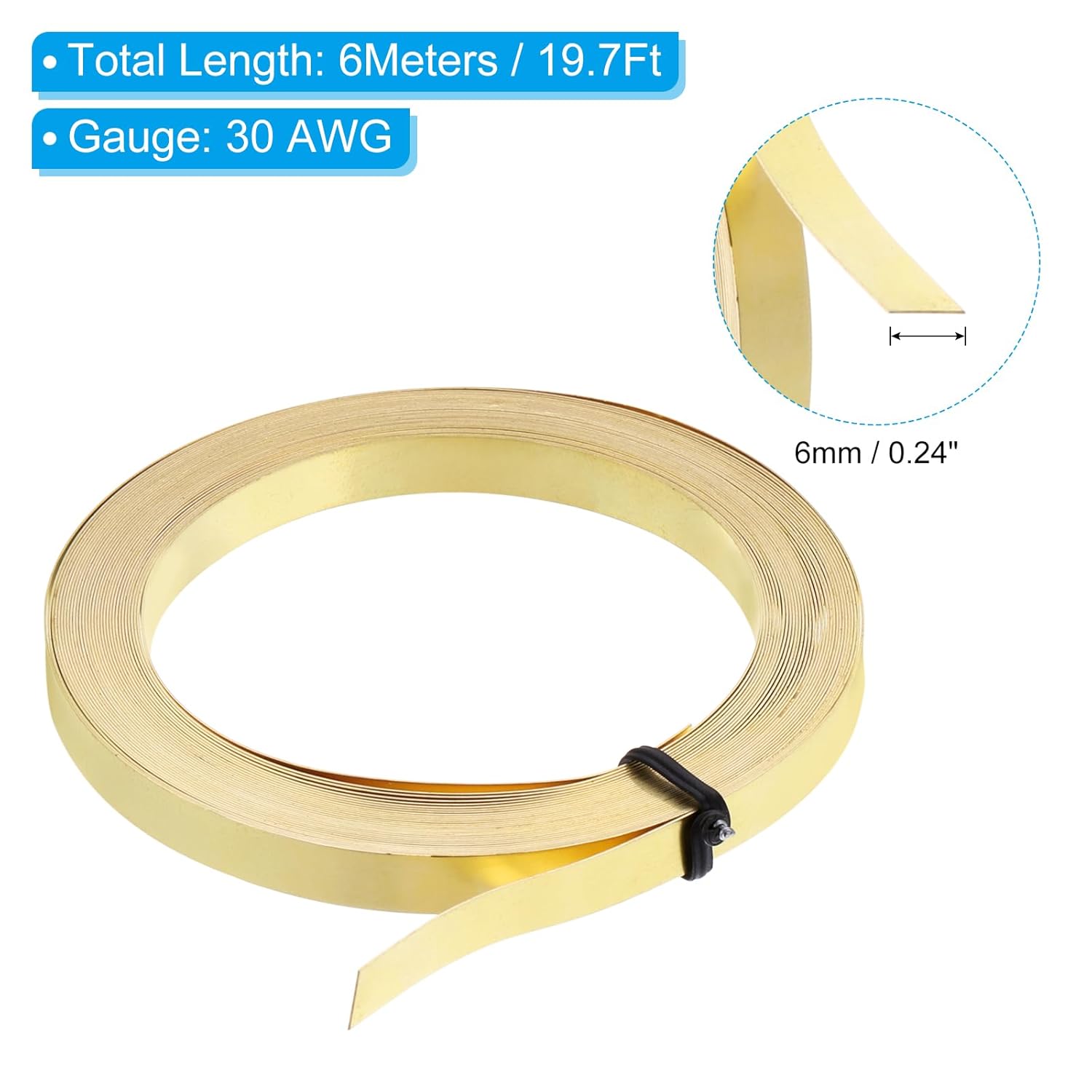 - Gauge: 30 AWG (0.25mm Thickness); Width: 6mm / 0.24inch; Total Length: 6m / 19.7 feet; Packing List: 1roll x Brass Wire