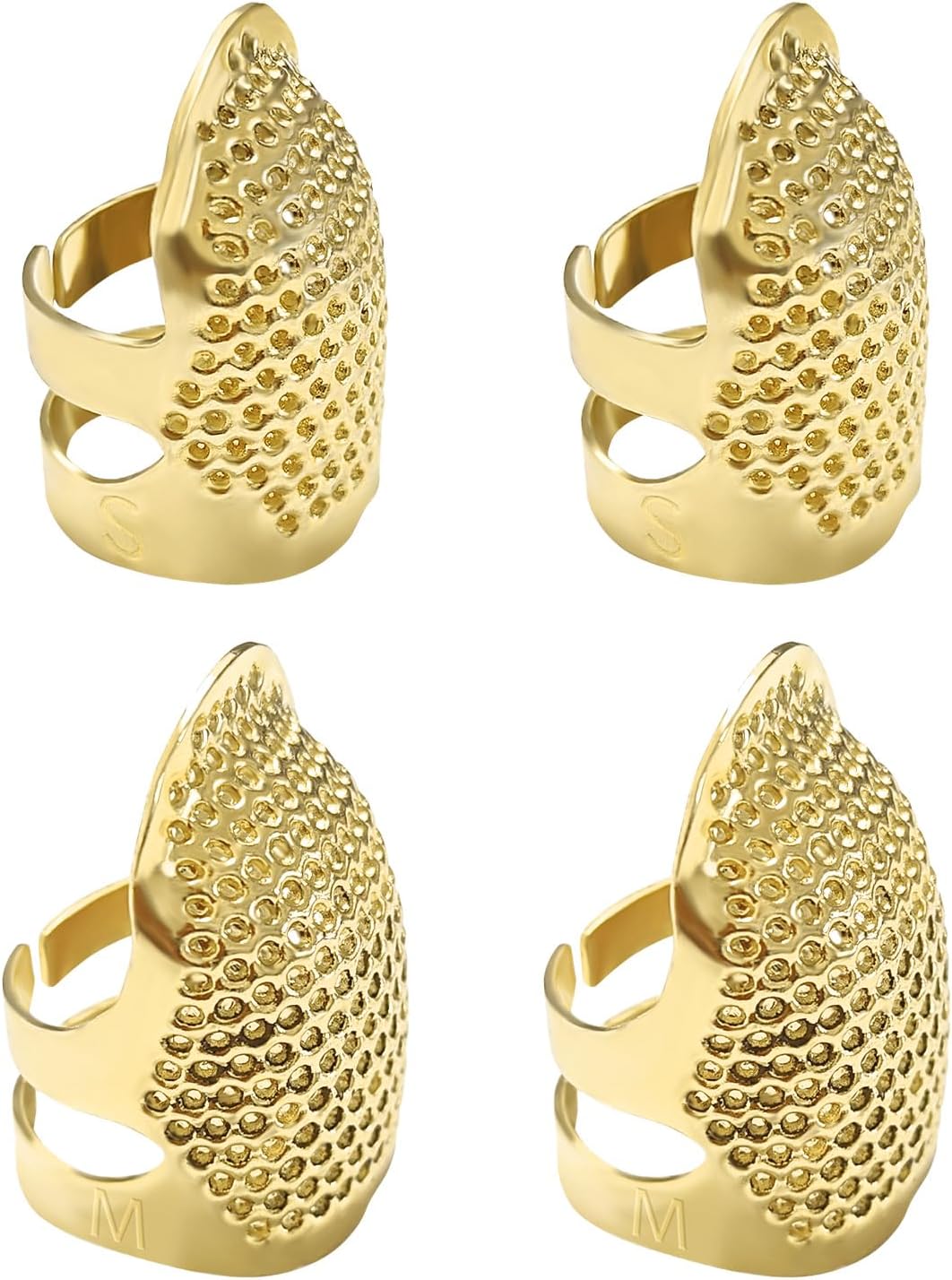 ZESION 4Pcs Sewing Thimbles, Adjustable Metal Thimbles for Hand Sewing Finger Protector, Quilting Craft Accessories for Knitting Needlework DIY Tools, Gold(2 Sizes, S/M)