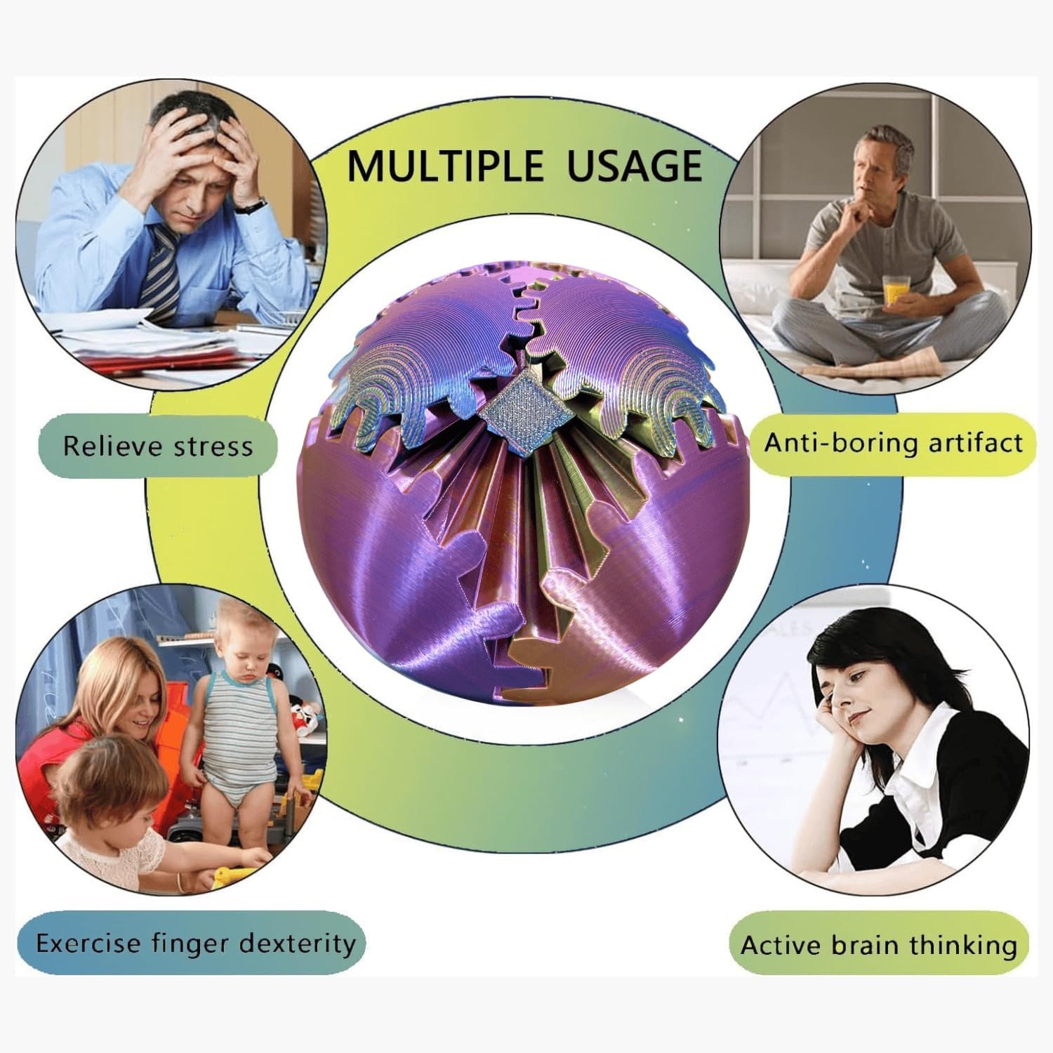 - 【Pocket-Sized Fun】The Gear Ball is your perfect companion for on-the-go fun! Its compact size allows you to take it anywhere you please. Whether you're at work, in class, or simply in need of a mental recharge, the Gear Ball is there to provide a portable and enjoyable fidgeting experience.