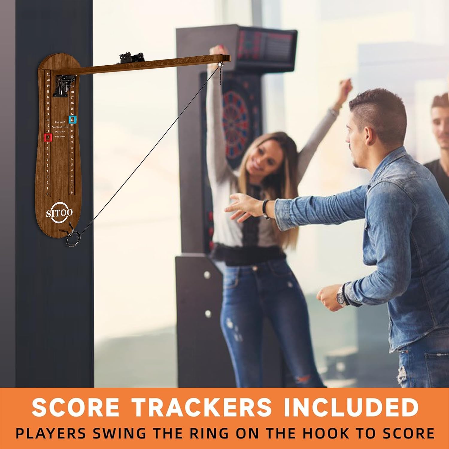 - EASY TO PLAY: Players can play alone or in team, take turns to swing the ring on the hook to score, and the first individual or team to score 21 points wins.