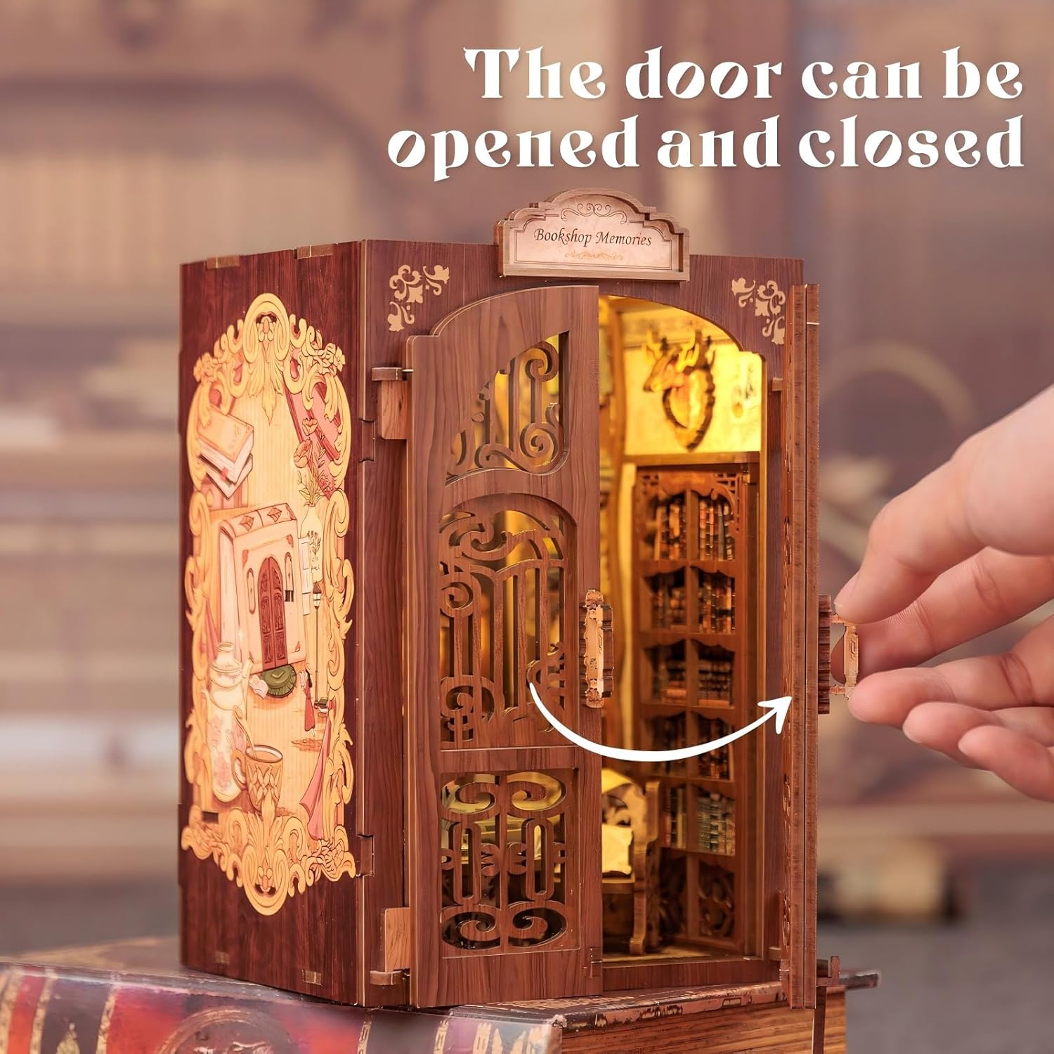Fsolis Book Nook Kit, DIY Miniature Dollhouse Kit 3D Puzzles for Adults and Beginners, 127 Wooden Pieces, Tiny House Mini Booknook Craft Bookshelf Decor, Gifts for Women Book Lovers(Bookshop Memory)
