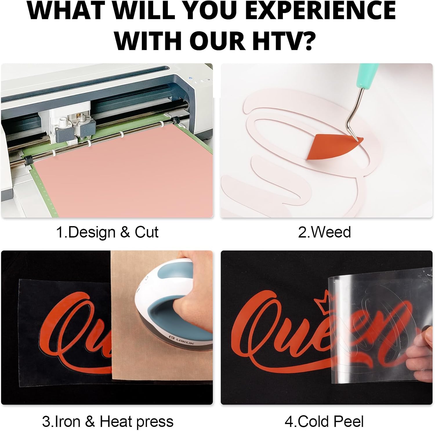 - 【EASY TO CUT & WEED & TRANSFER】Our premium quality heat transfer vinyl will save time which you may waste on each image or letter, because you can cut and weed easily through the designs just right. The iron on vinyl is sensitive to temperature and pressure, which can be heat transferred to any t-shirt easily. <Before cutting, make sure the blade is clean and sharp, so that your design can be cut well and weeding can be done better