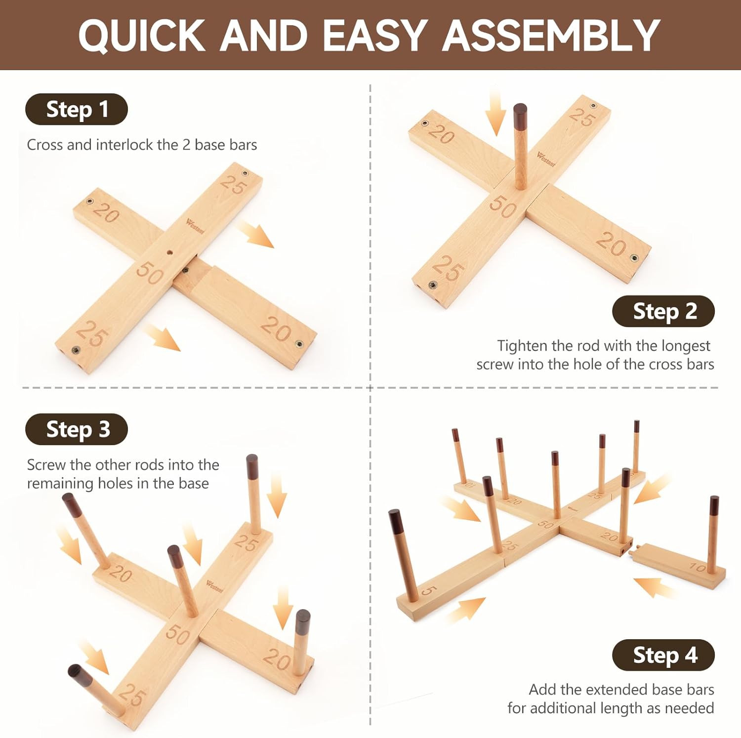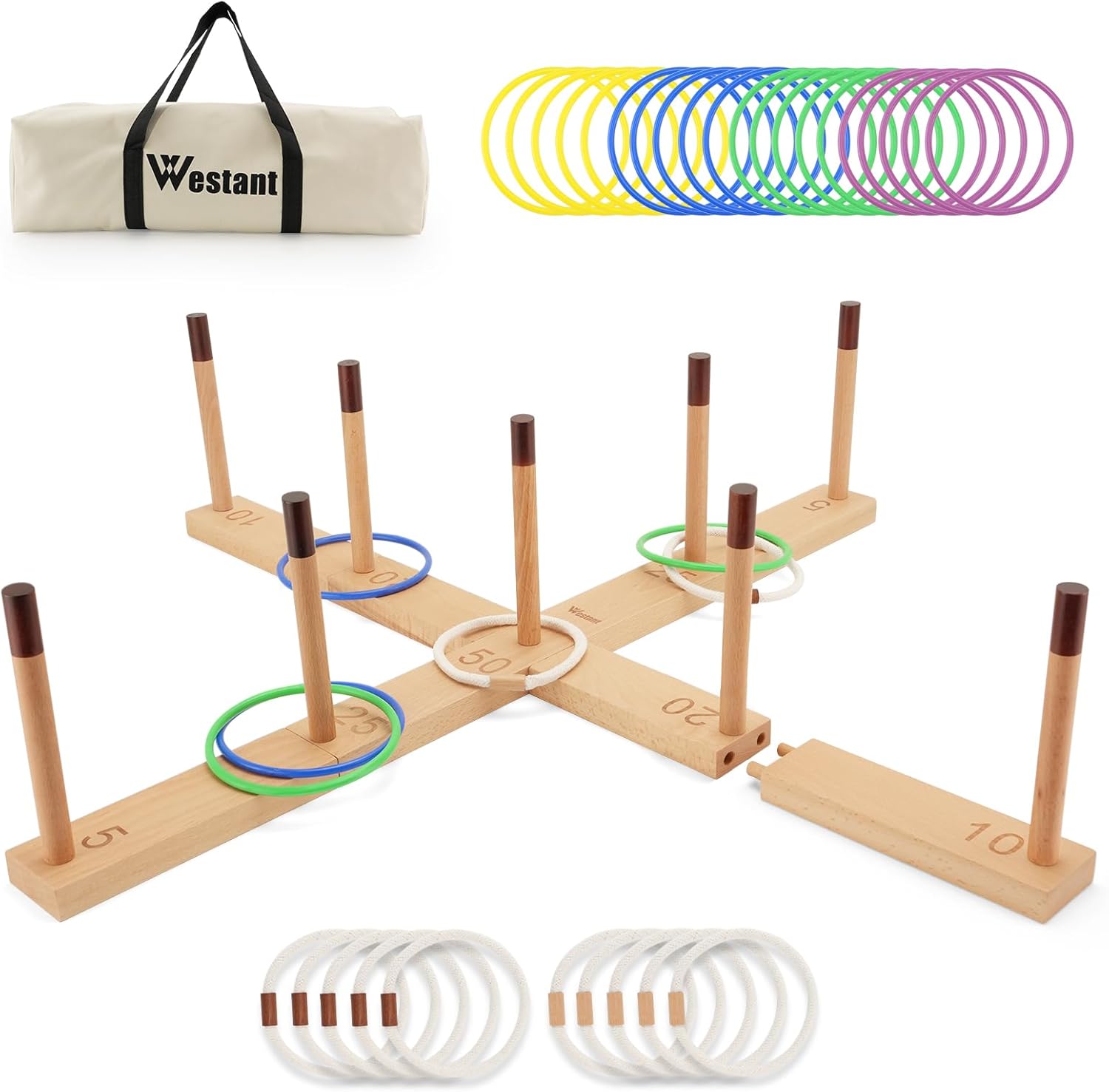 - Portable and Easy to Assemble - Setting up this ring toss game is a breeze and can be done in minutes with no tools required. The included carrying bag lets you bring the fun to the lawn, patio, park, beach, or anywhere with ease.