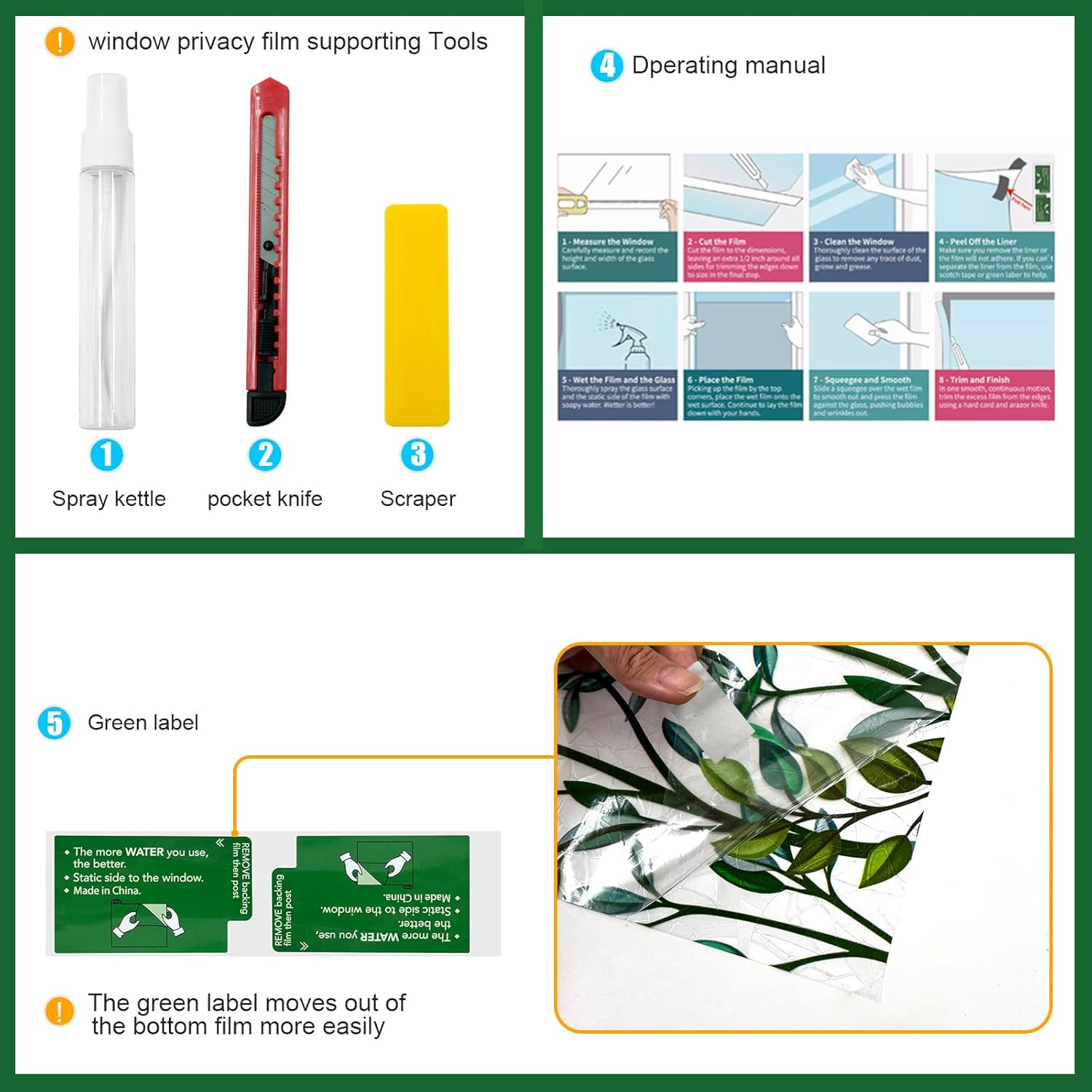 - DECORATIVE DESIGN: These window films feature a beautiful green leaf pattern that adds a natural freshness to any room and creates a rainbow visual effect when the sun shines.