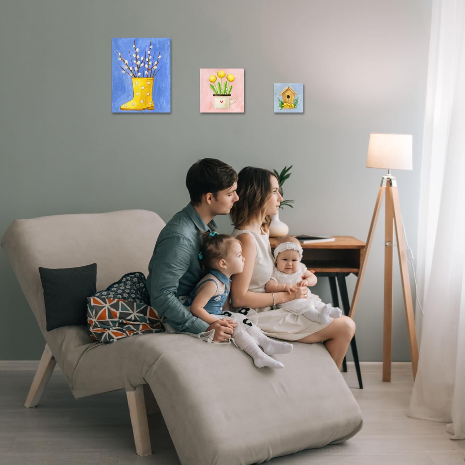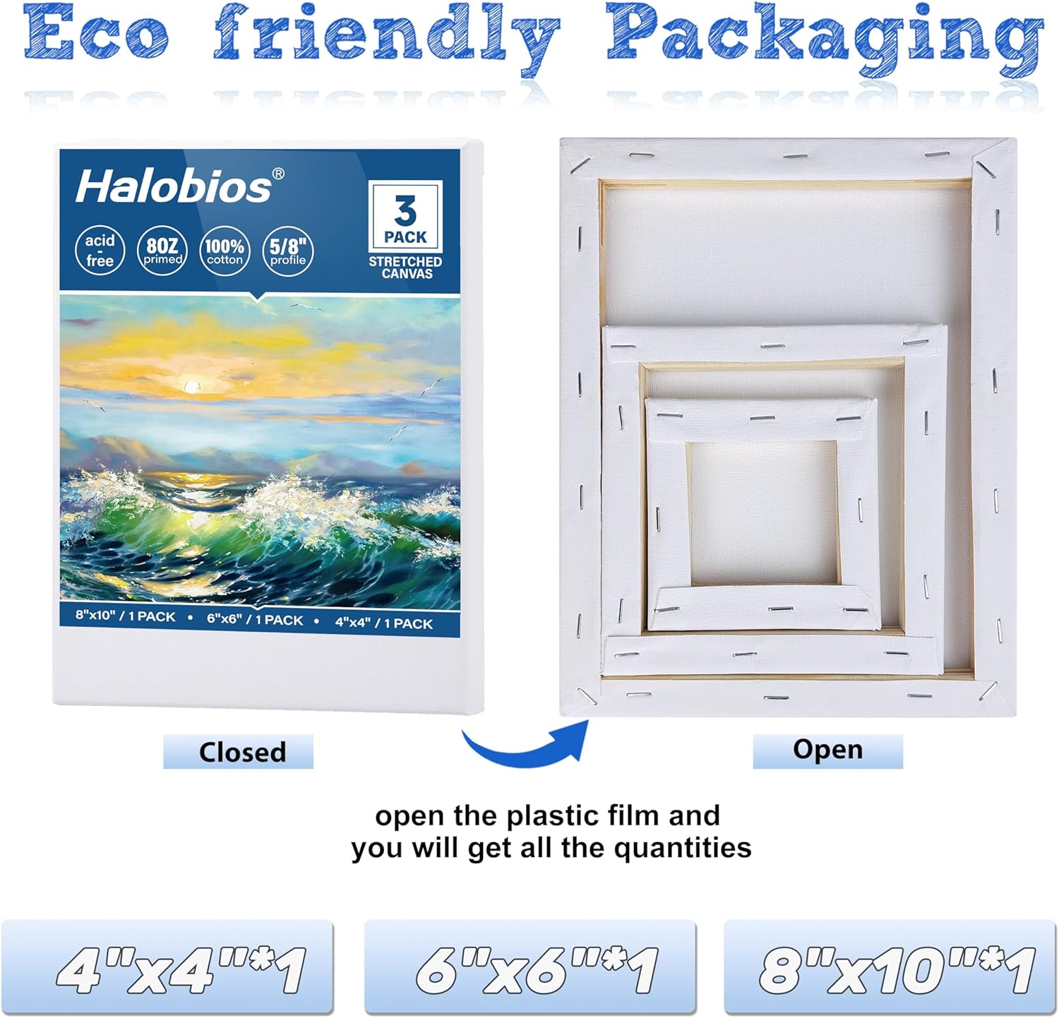 Stretched Canvases for Painting with 4x4 Inch, 6x6 Inch, 8x10 Inch, 3 Packs Pinting Blank Canvases for Acrylics,Oils & Other Painting Media, 5/8 Inch Profile 100% Cotton Artist Framed Canvas