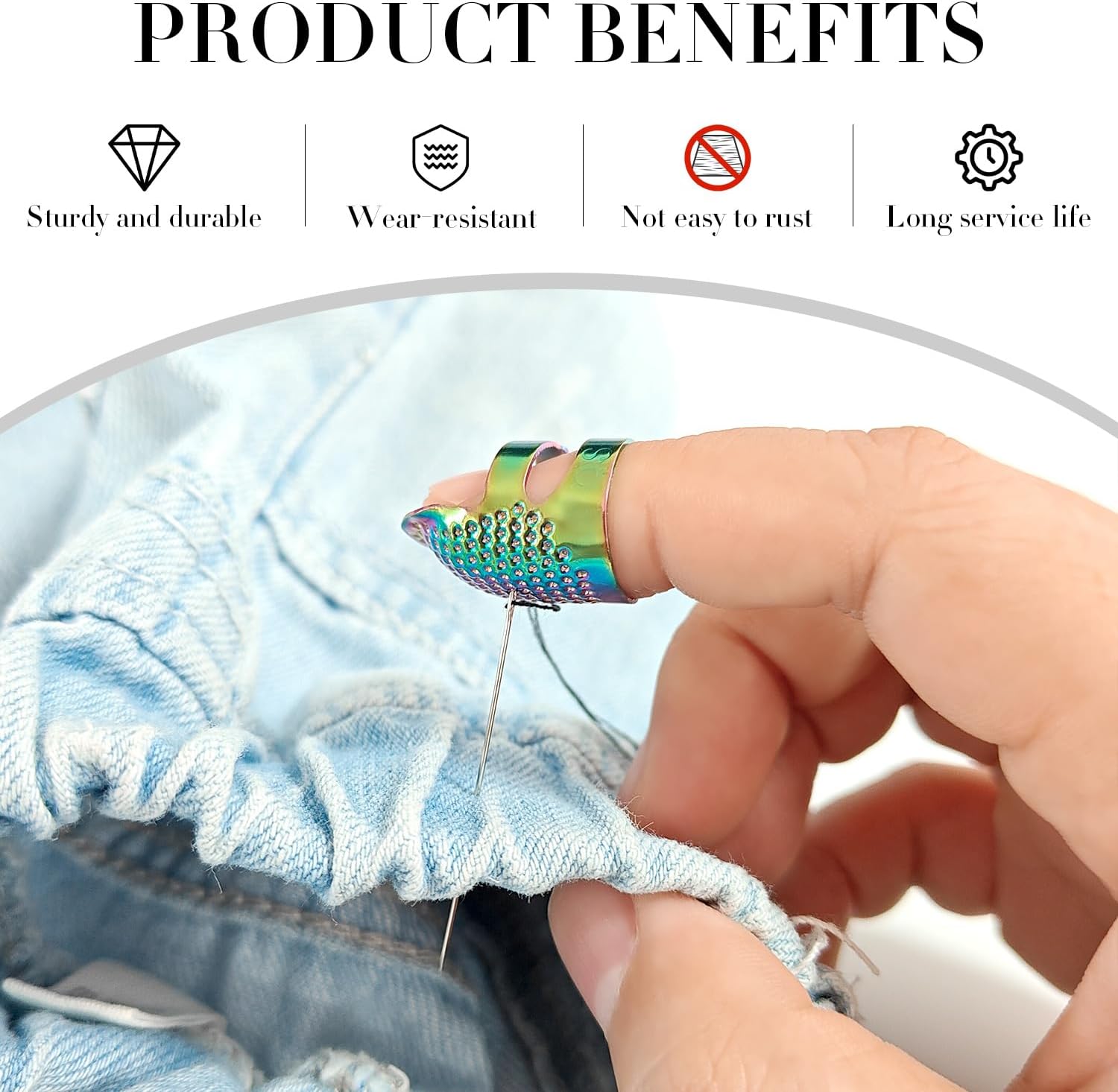FR 4 Pack (2 Sizes, S/M) Sewing Thimble Finger Protector, Adjustable Finger Metal Shield Protector Pin Needles Sewing Quilting Craft Accessories DIY Sewing Tools Needlework Dazzle