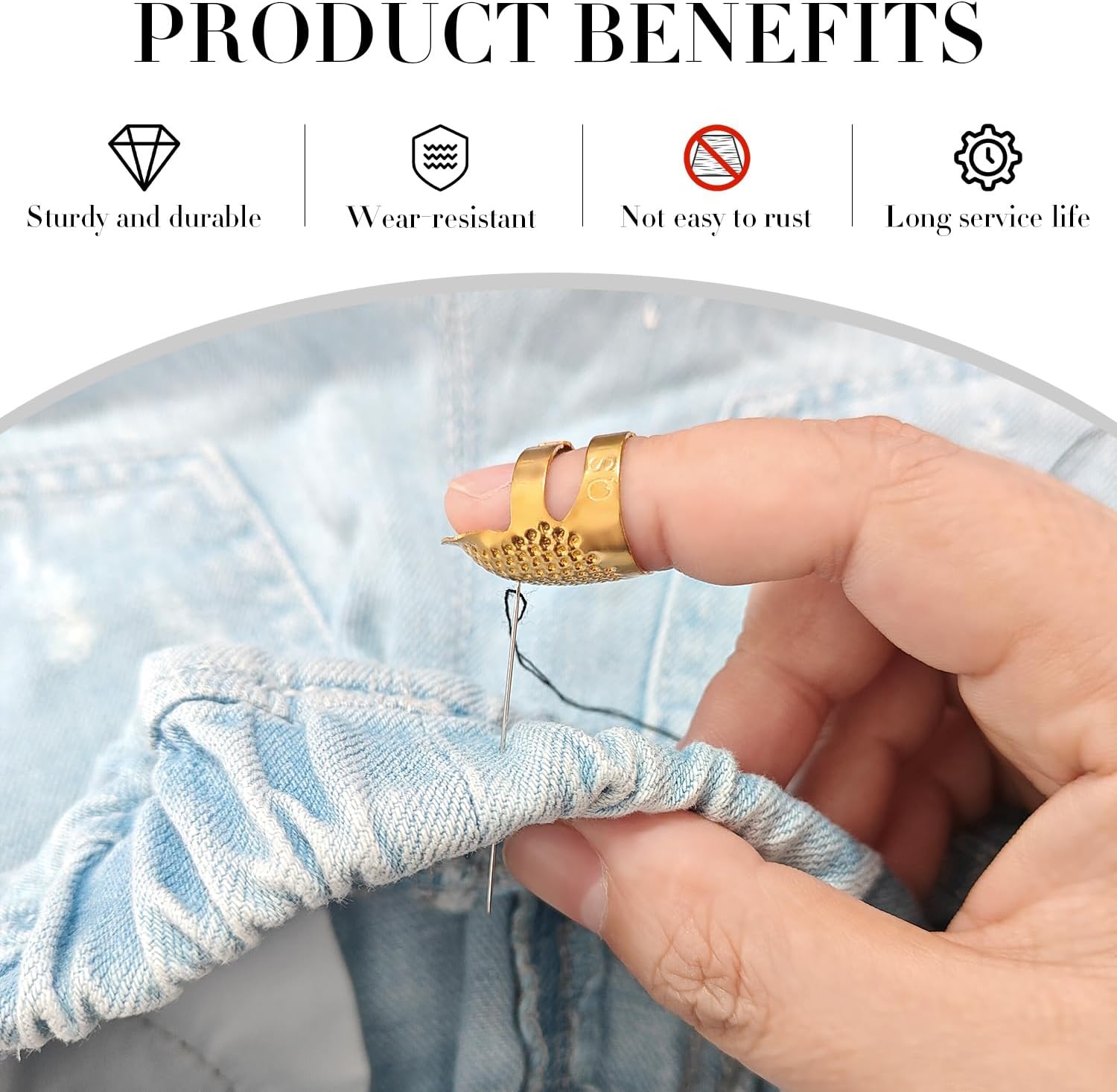FR 4 Pack (2 Sizes, S/M) Sewing Thimble Finger Protector, Adjustable Finger Metal Shield Protector Pin Needles Sewing Quilting Craft Accessories DIY Sewing Tools Needlework Gold