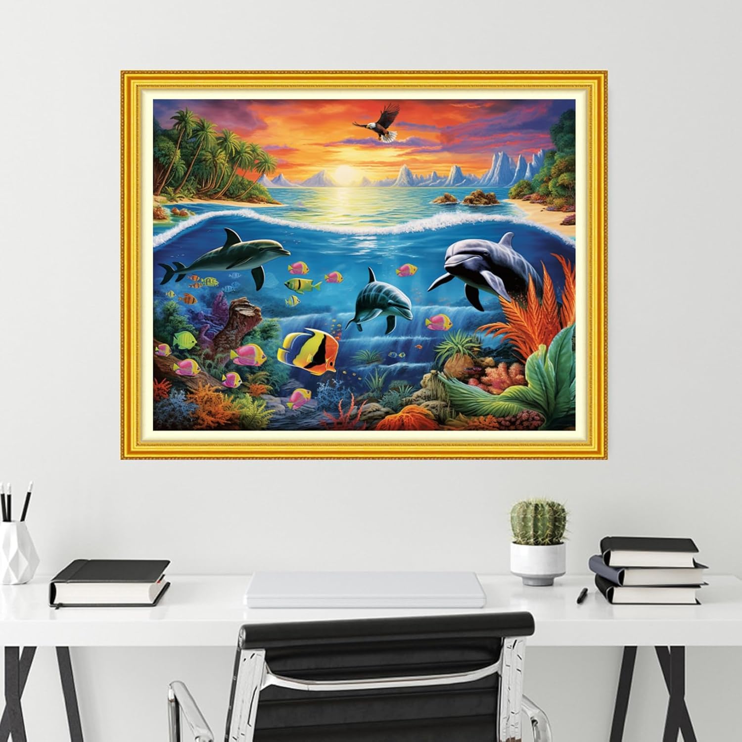 Funchey Stamped Cross Stitch Kits, DIY Cross Stitch Pattern for Adults Beginners Needlepoint Kits Embroidery Kit Arts and Crafts 11CT-Underwater World 16x20 inch