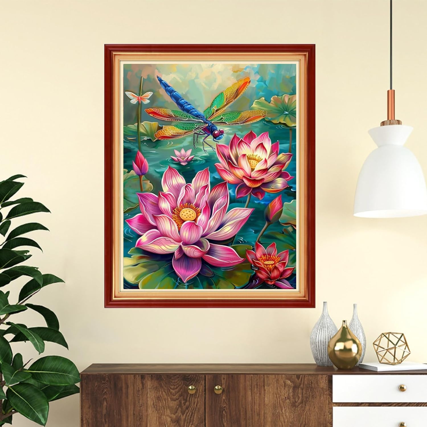 Funchey Stamped Cross Stitch Kits, DIY Cross Stitch Pattern for Adults Beginners Needlepoint Kits Embroidery Kit Arts and Crafts 11CT-Colorful Lotus Dragonfly 16x20 inch