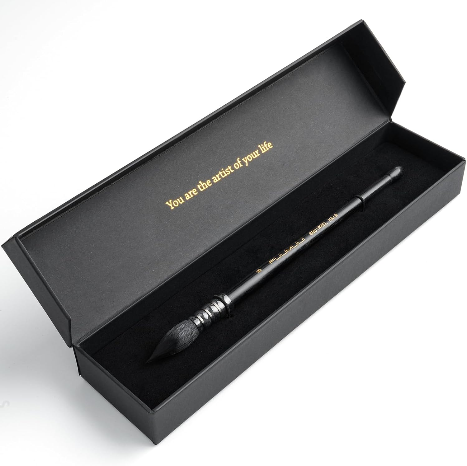 Professional Watercolor Brush, Fuumuui Natural Squirrel Hair Mop Brush, Round Quill Detail Fine Tip Watercolor Paint Brush for Water Color Gouache Ink Painting - Sizes #8
