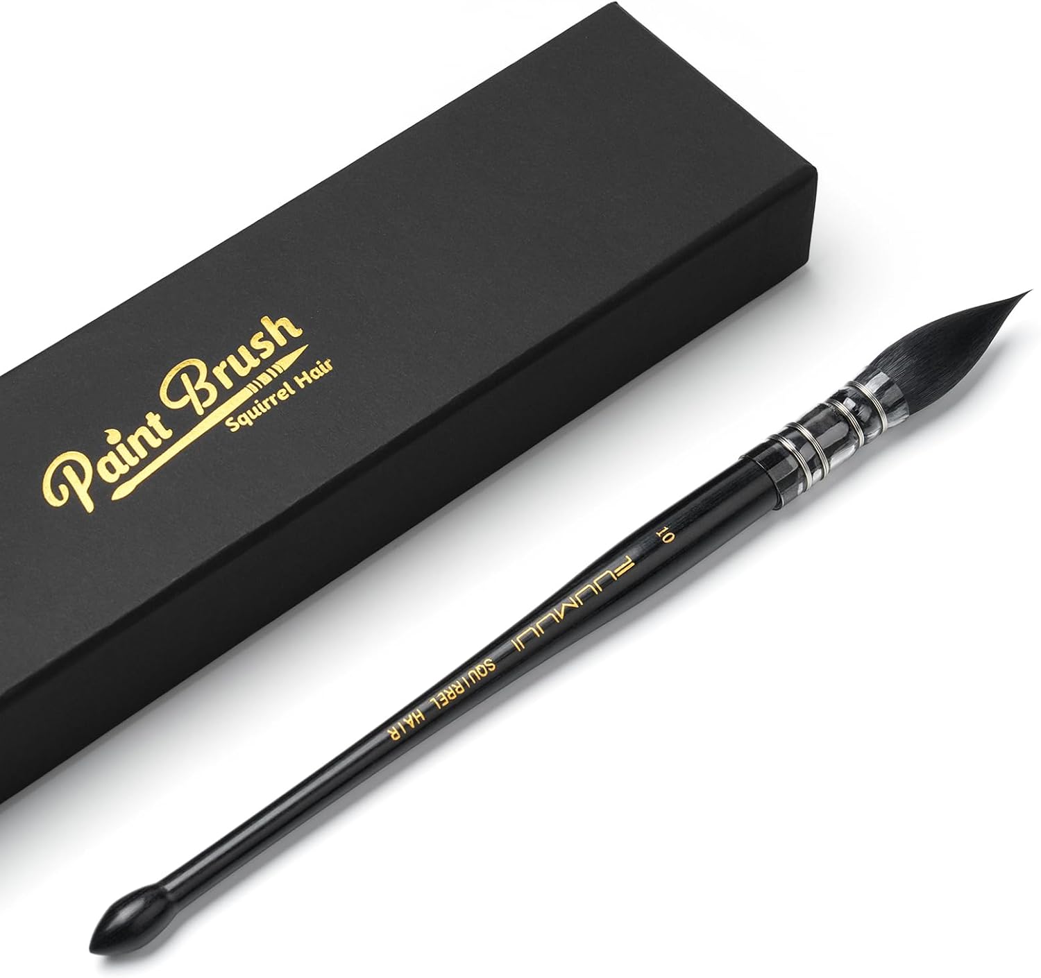 Professional Watercolor Brush, Fuumuui Natural Squirrel Hair Mop Brush, Round Quill Detail Fine Tip Watercolor Paint Brush for Water Color Gouache Ink Painting - Sizes #10
