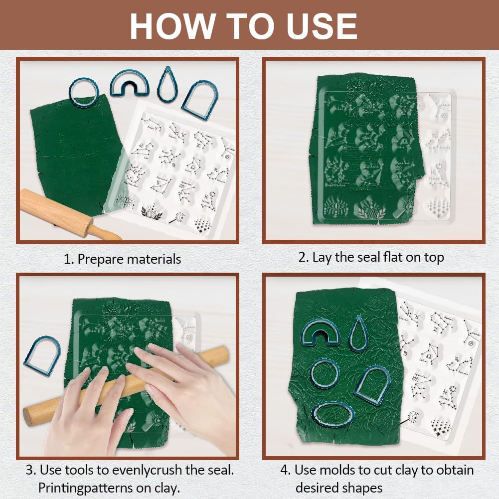 - How to Use: Simply put the polymer clay stencils on and roll it to get a clear dimensional texture, then use with water-based acrylic paint for coloring, easily get the amazing effect.