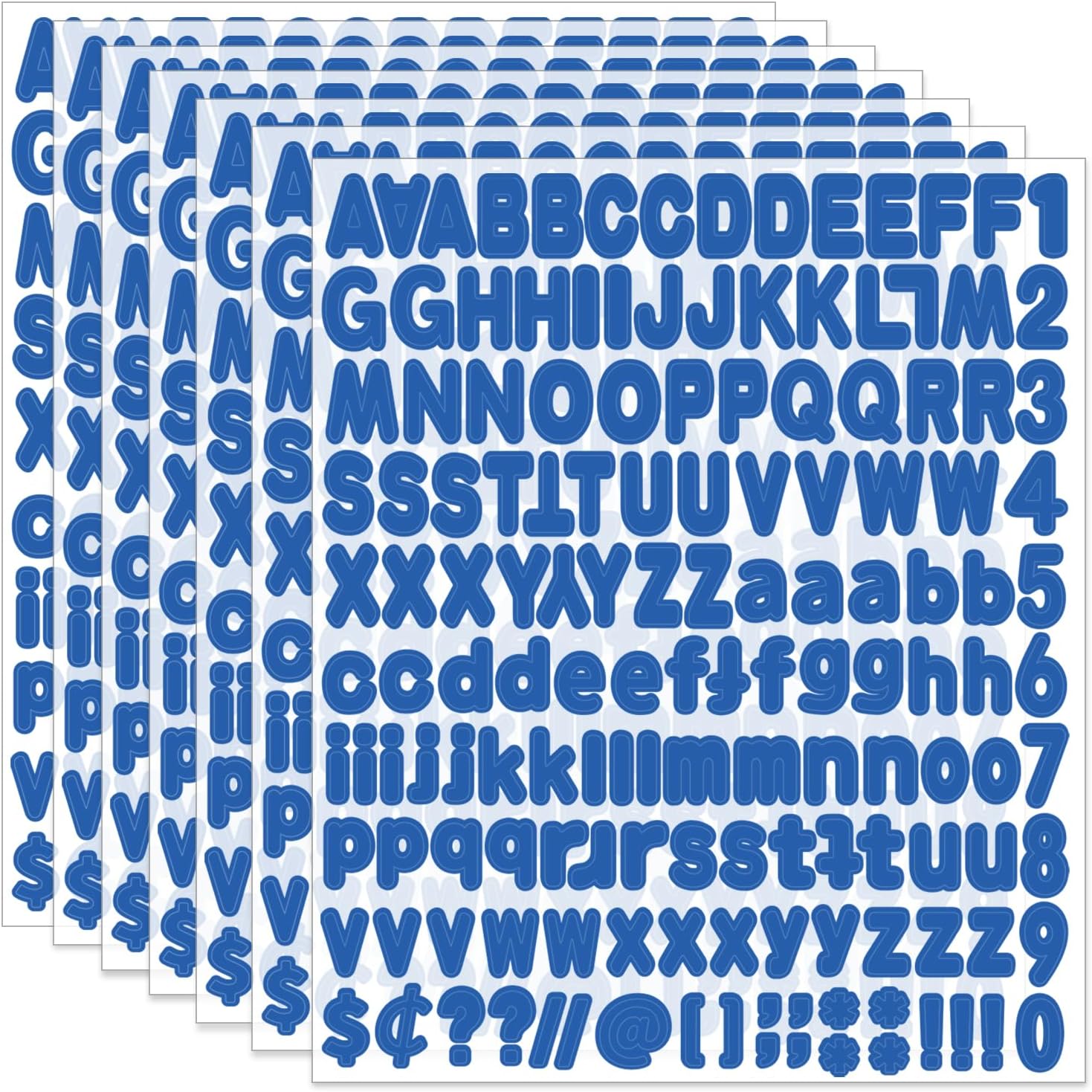 Alphabet Stickers, 1''Inch 12 Sheets Blue Letter Stickers Self-Adhesive Vinyl for Mailbox Numbers, Bulletin Boards & Home Decor